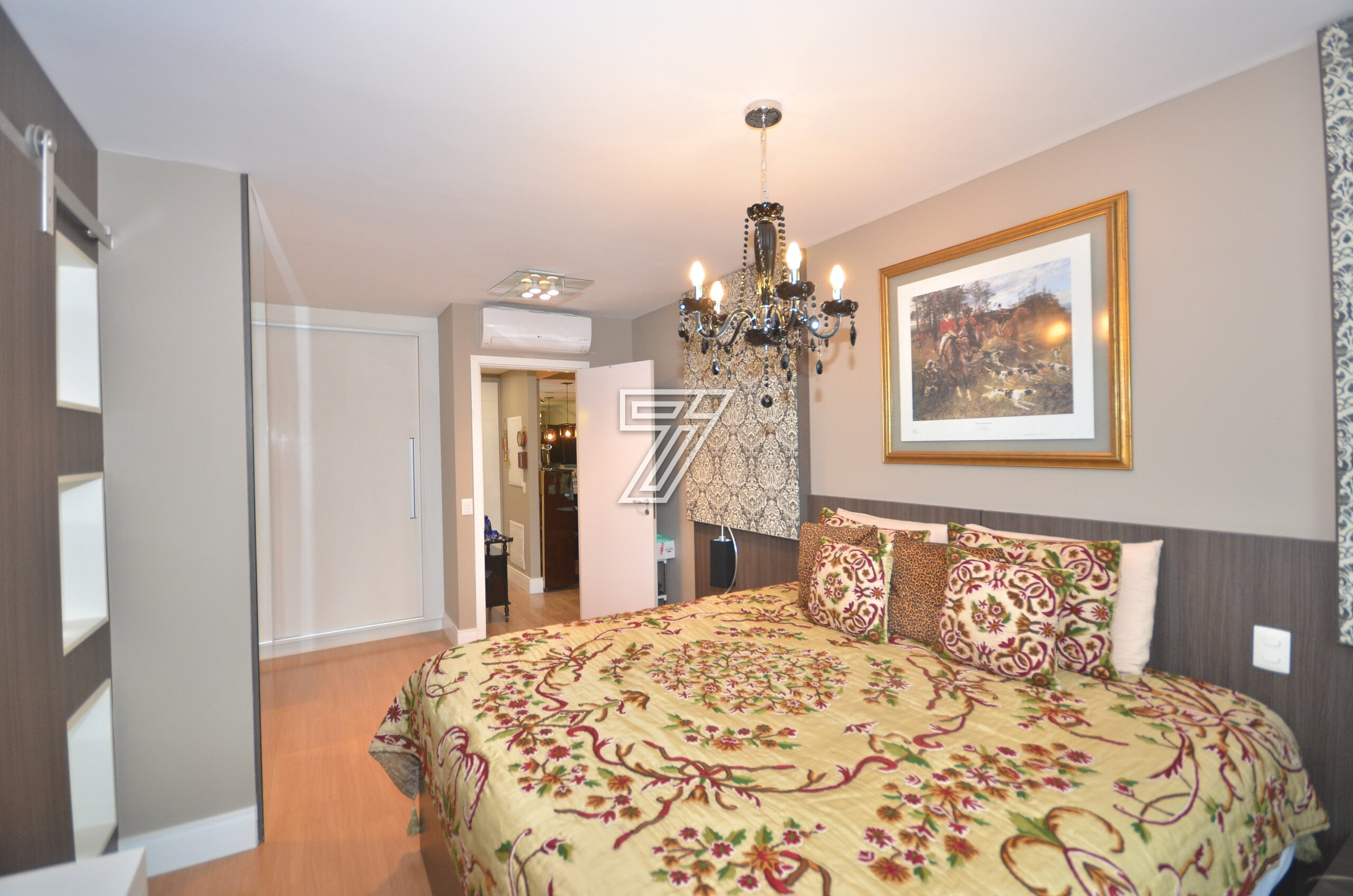 A área íntima com planta original de 3 quartos, está configurada hoje com 2 suítes, sendo a suíte master com closet e ar condicionado.