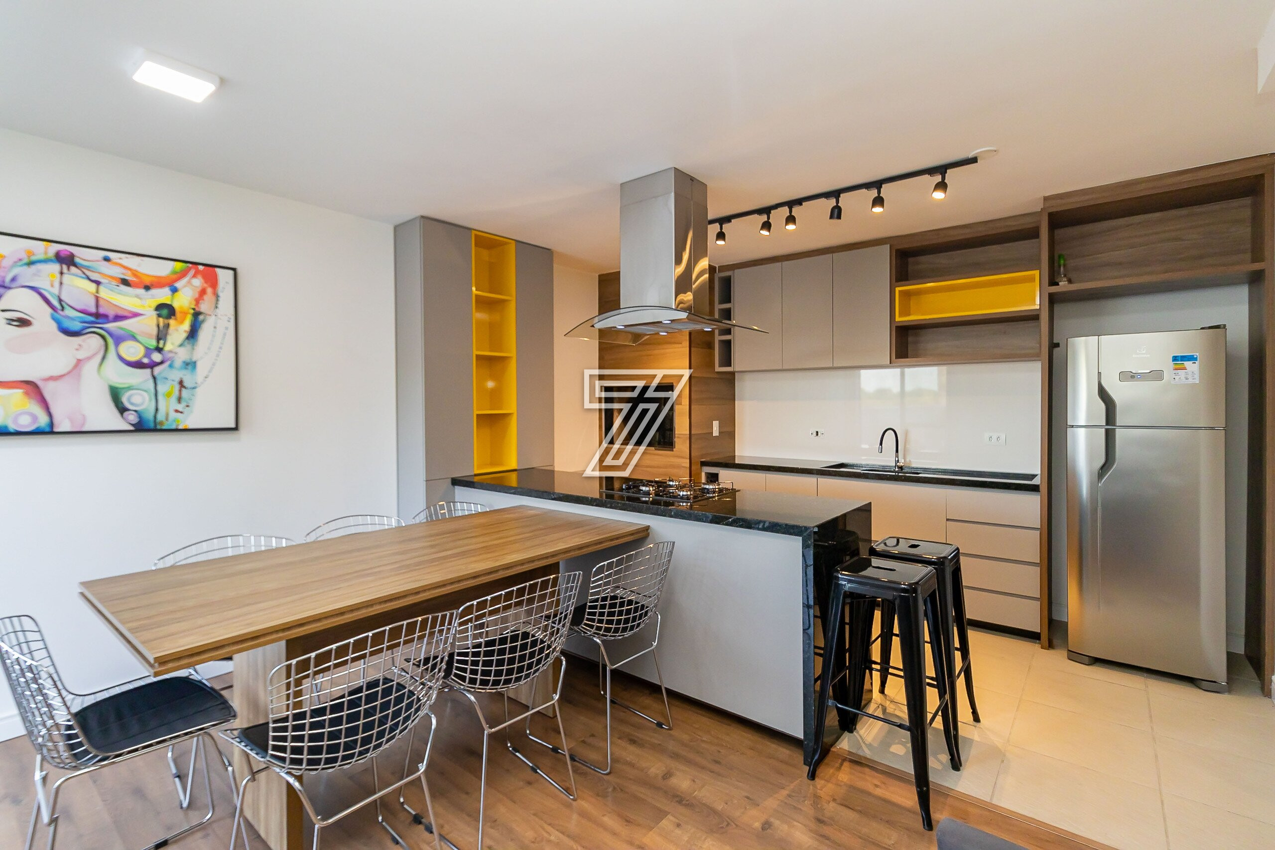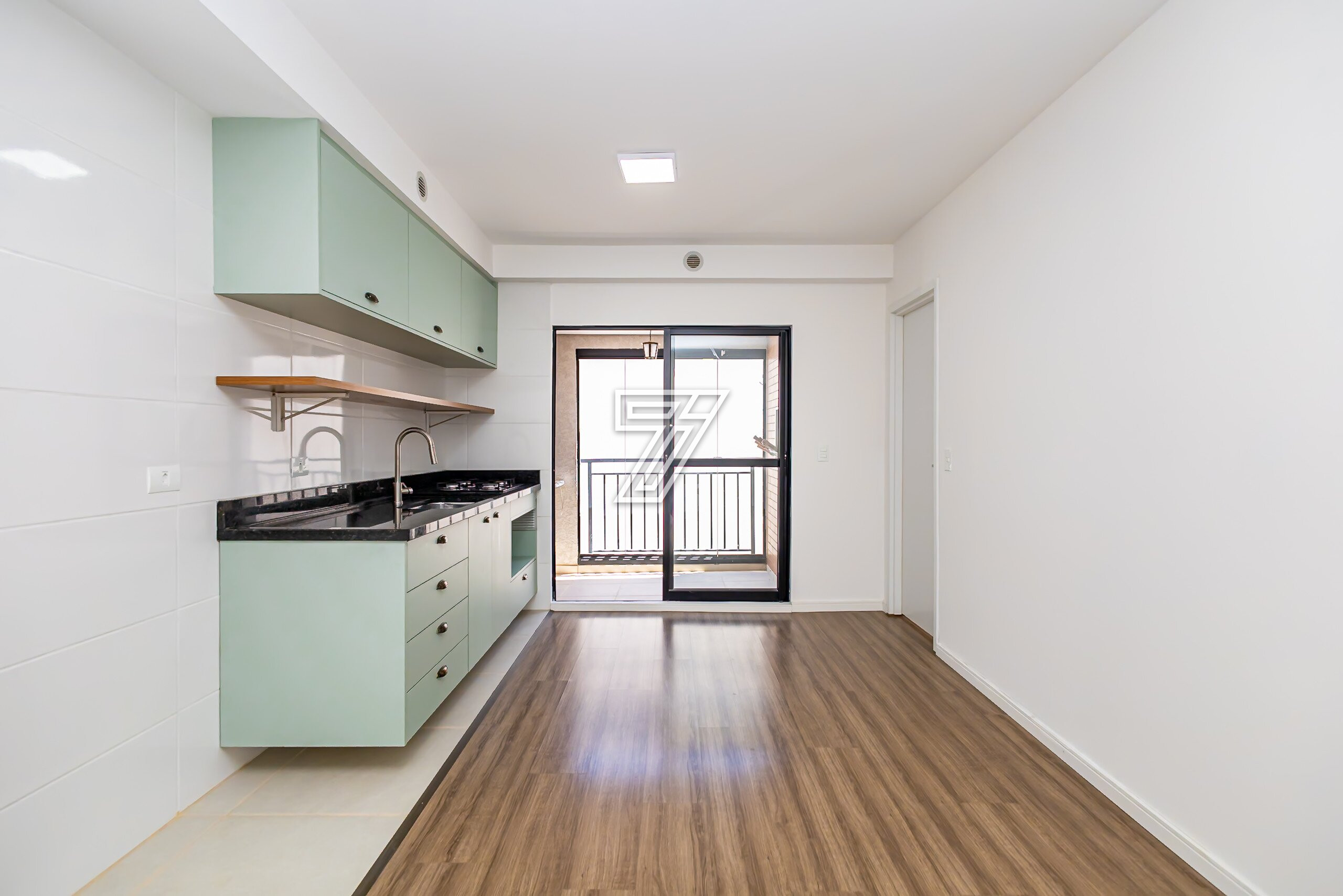 O imóvel conta com 2 quartos, sendo 1 suíte. A sala para dois ambientes é integrada à sacada com churrasqueira, criando um espaço aconchegante.