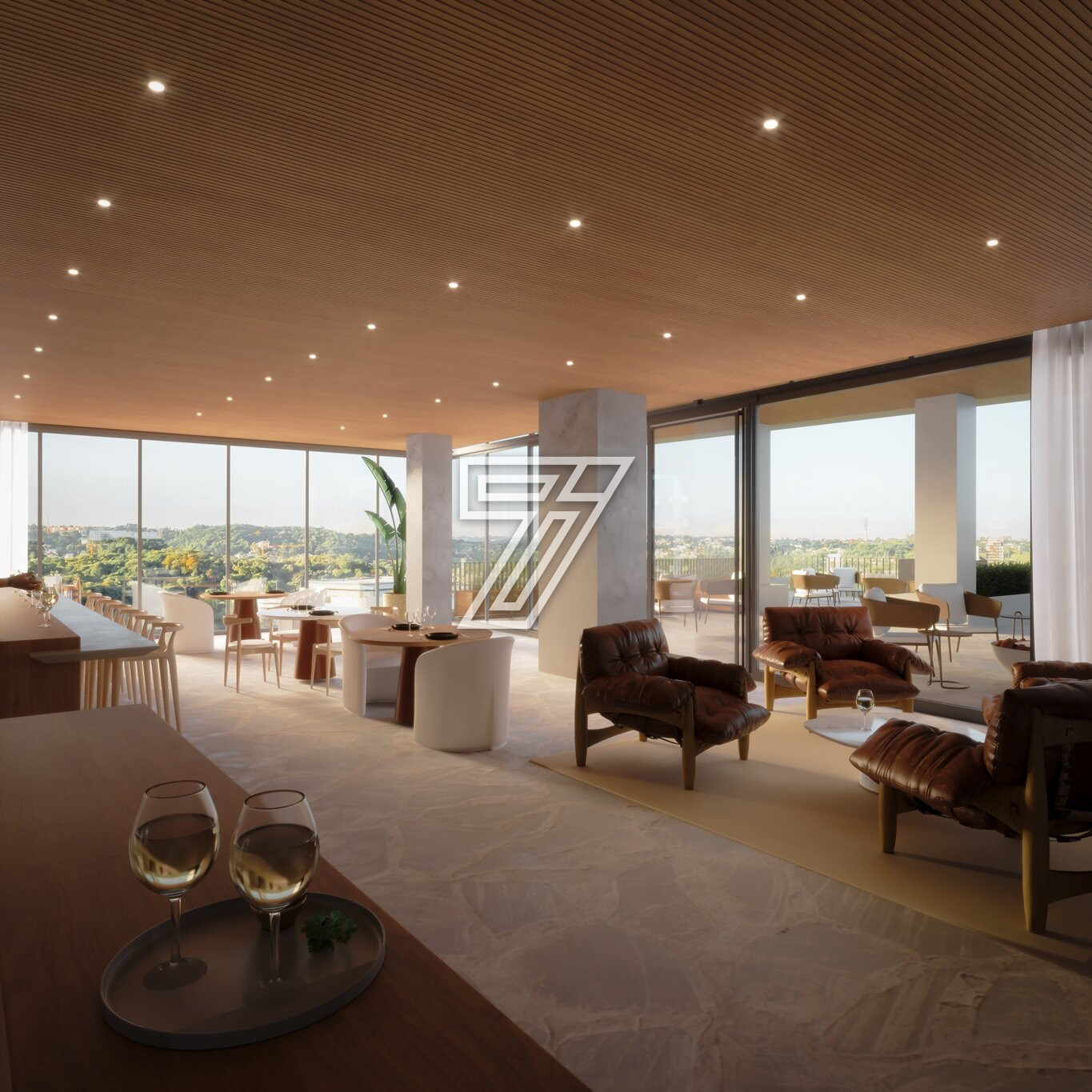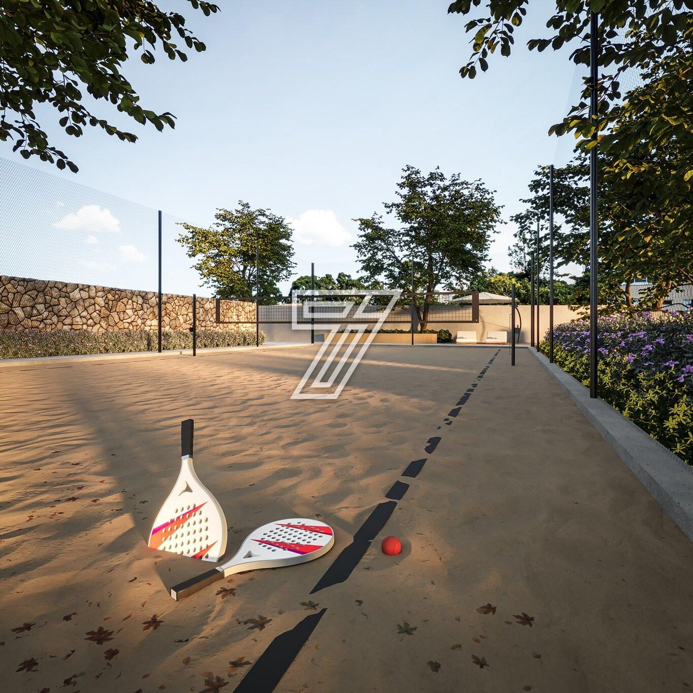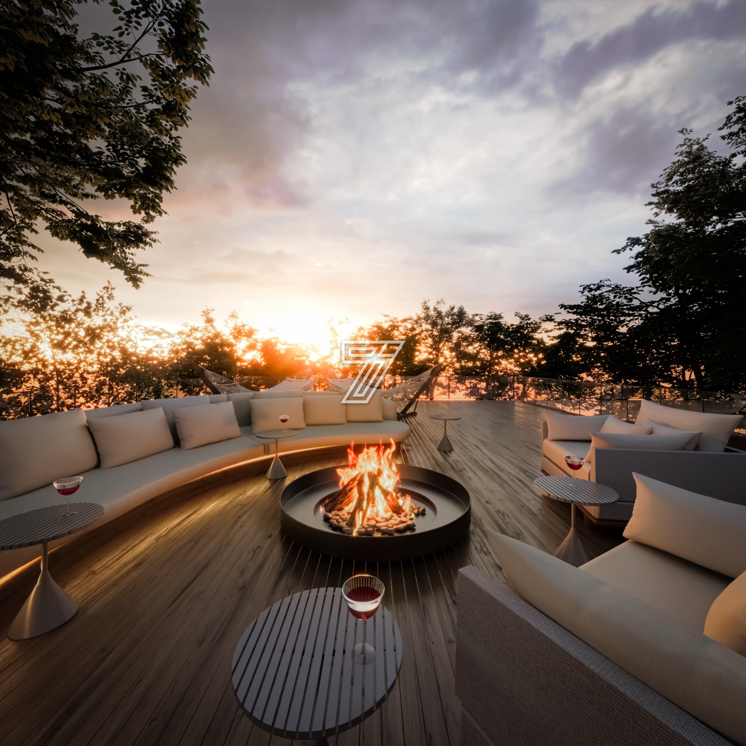 Port cochère, Guarita social, Guarita de serviço, Lobby, Salão de festas, Espaço gourmet, Playground, Brinquedoteca, Acquaplay, Quadra beach tennis, Lounge de areia, Mirante para o bosque, Lounge do mirante, Pomar, Office, Horta, Estar, Fitness, Piscina semi-olímpica, SPA com foyer, Sauna úmida e seca, Espaço gourmet externo, Terraço funcional, Sala multifuncional, Lounge café, Sala de massagem, Hidromassagem, Banho horizontal, Espaçoo mindfulness, Terraço com lareira, Bicicletário, Vagas visitantes.