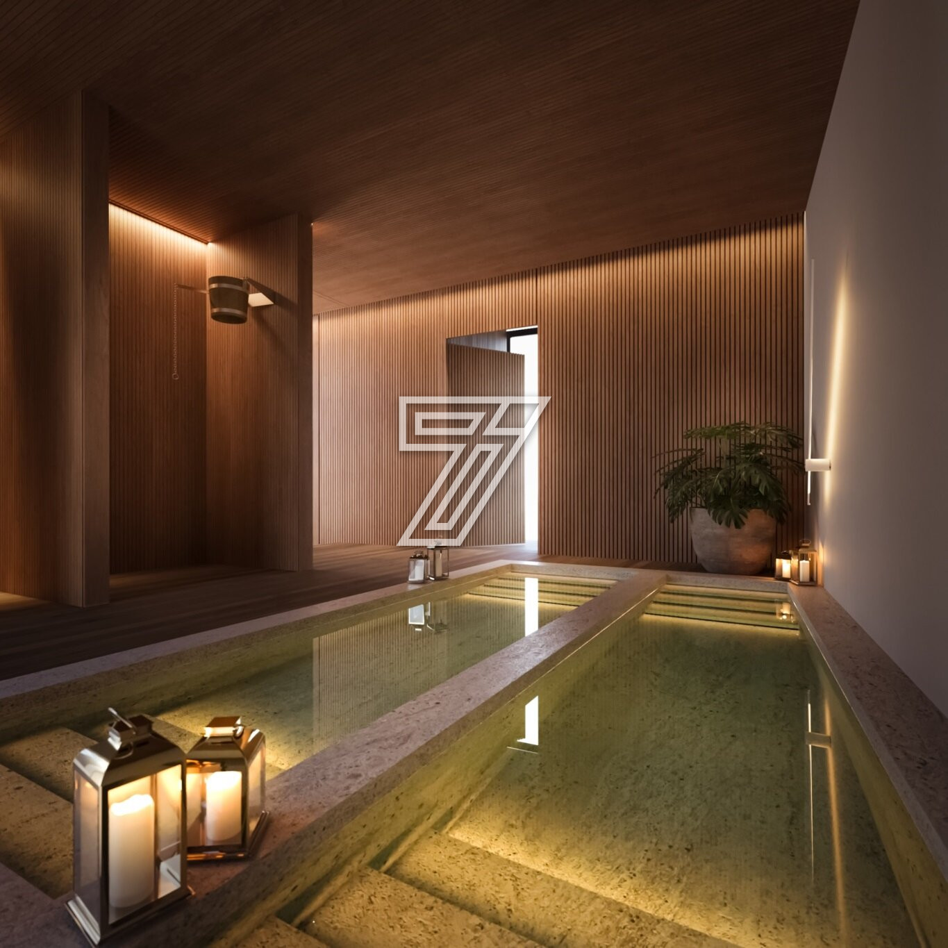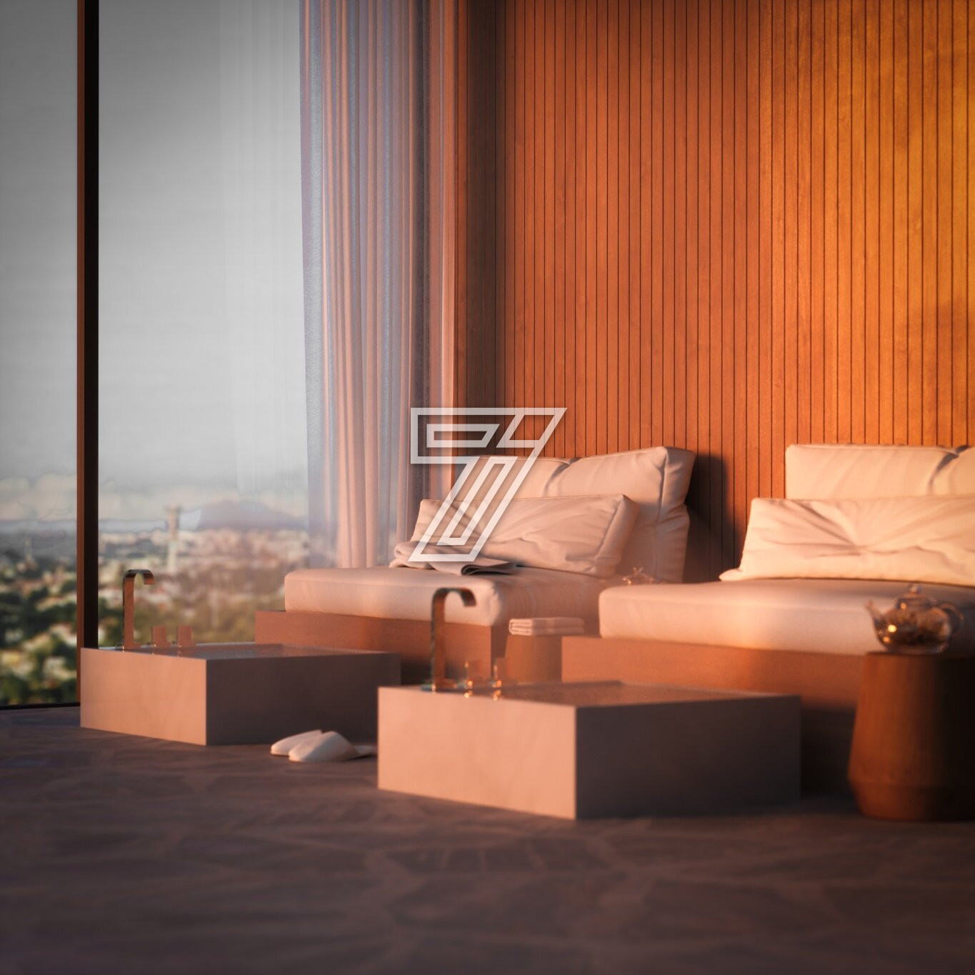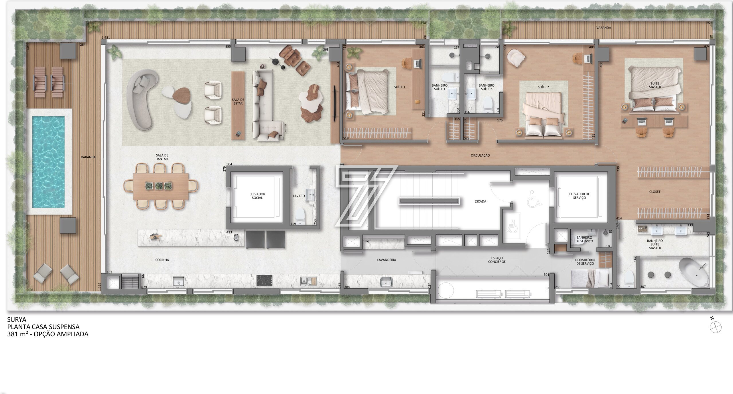 Hall acesso exclusivo Surya e Ardha, Terraço lounge, Espaço gourmet, Piscina externa, Solarium, Lounge, Escalda pés, Estação de chá, Haloterapia, Sauna úmida, Hidromassagem, Sala multifuncional, Estar.