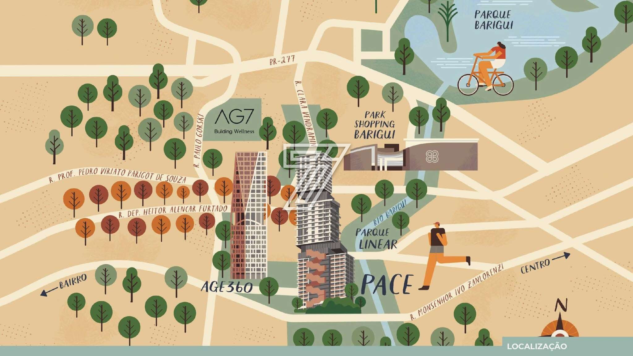 O PACE é a materialização plena do bem-estar, onde o morador é o centro e a natureza, o seu ambiente. Um projeto com mais de 160 metros de altura e 44 andares em uma localização nobre. Grandes varandas cobertas de verde materializam uma floresta urbana em meio à cidade, estabelecendo uma conexão irreplicável com o Parque Barigui.