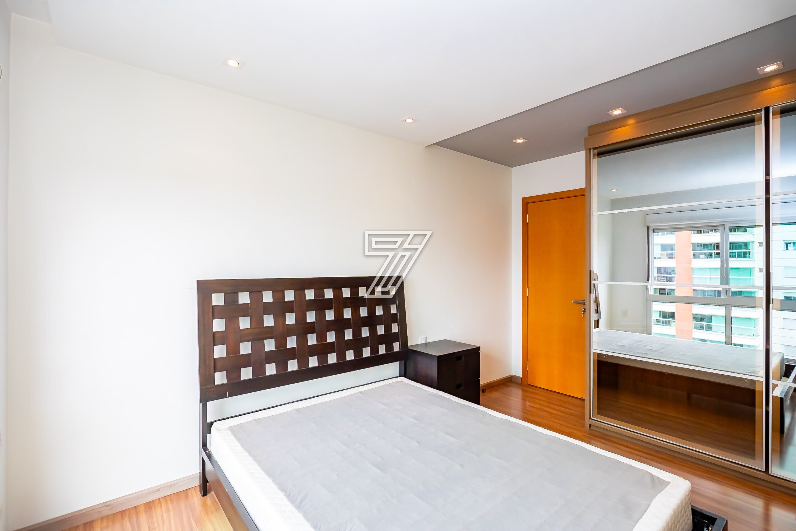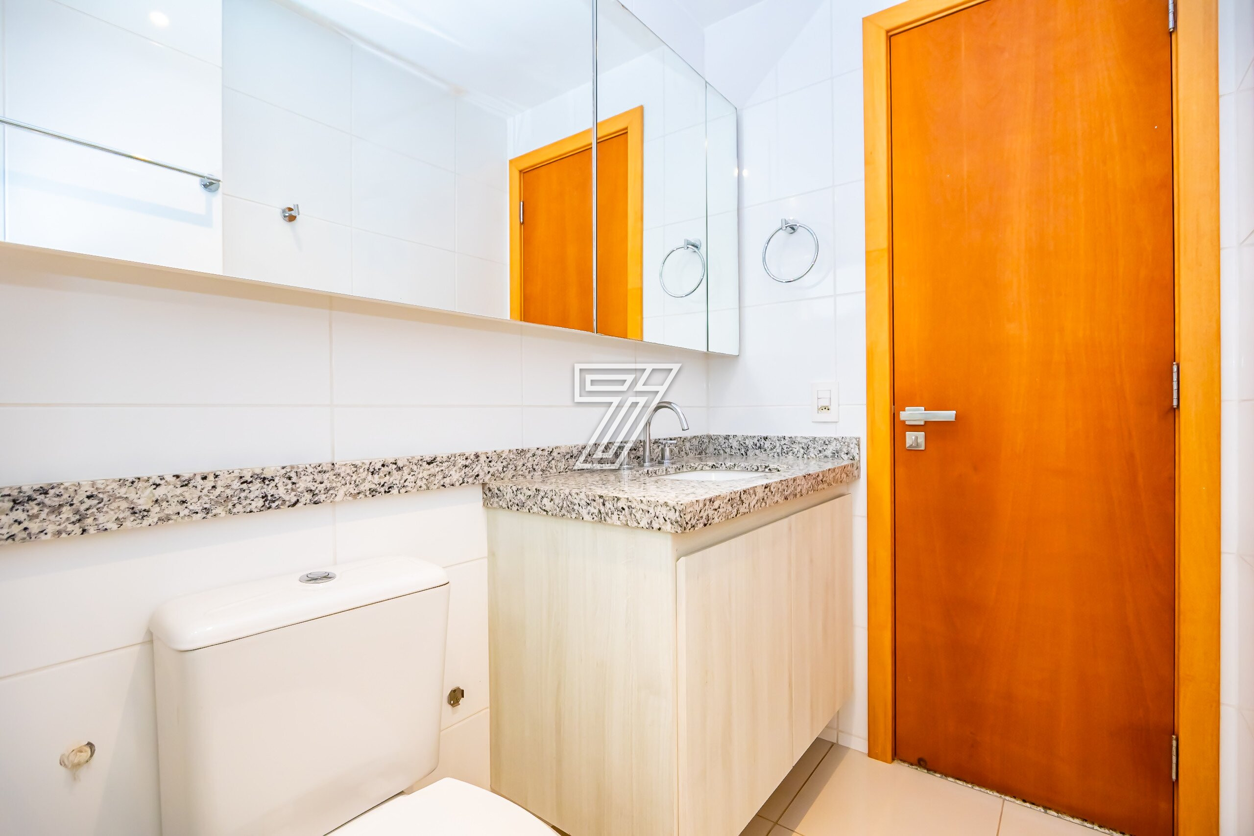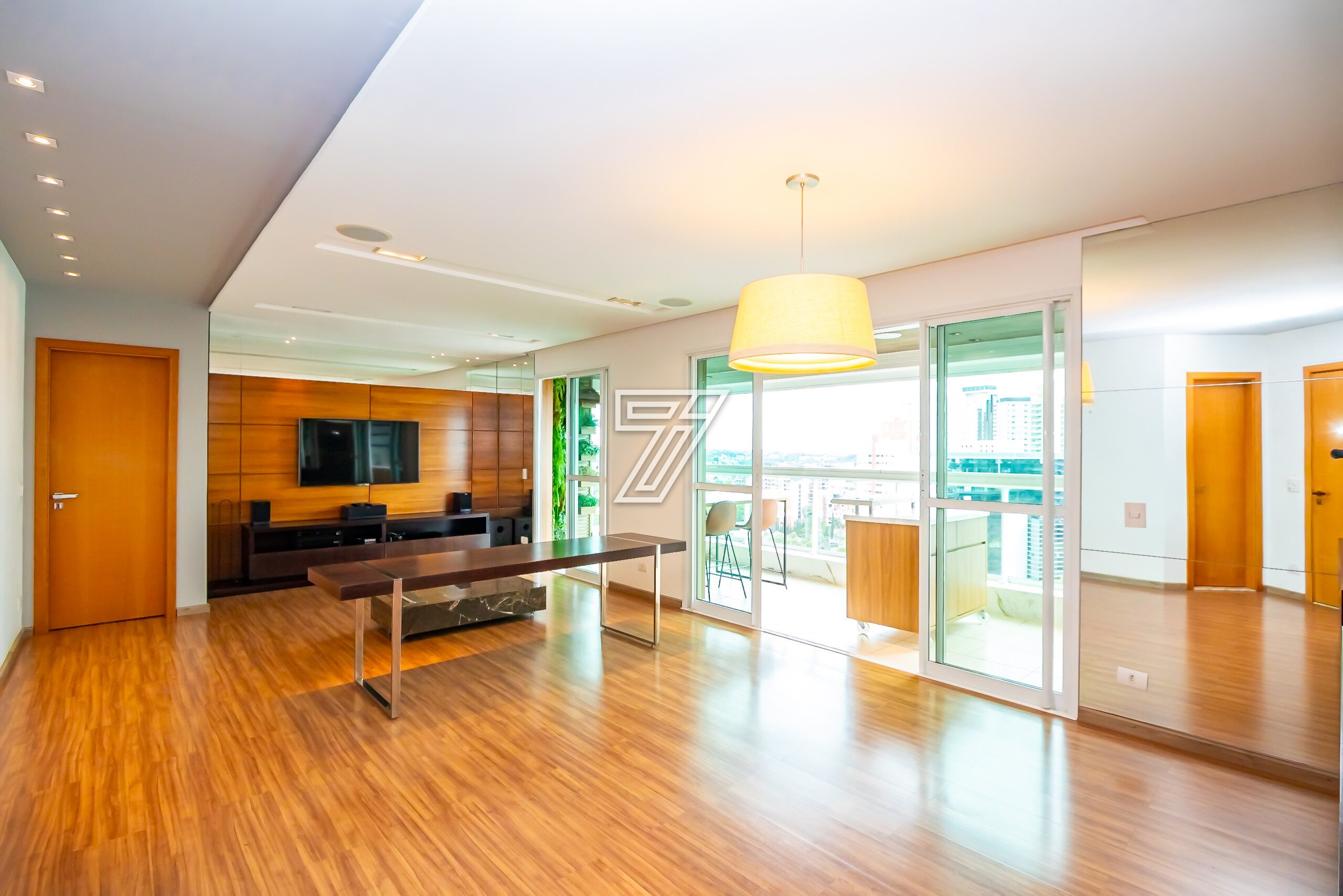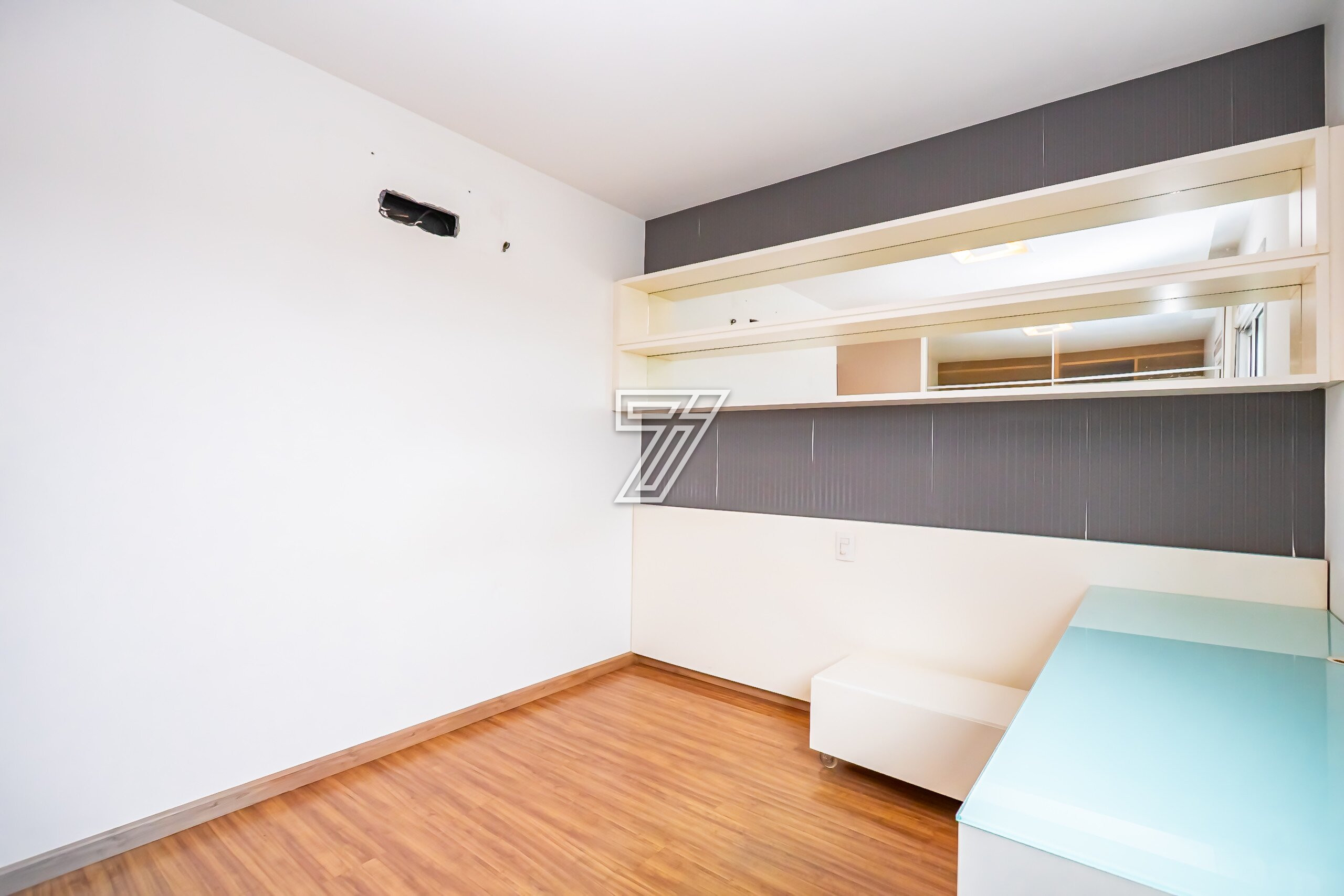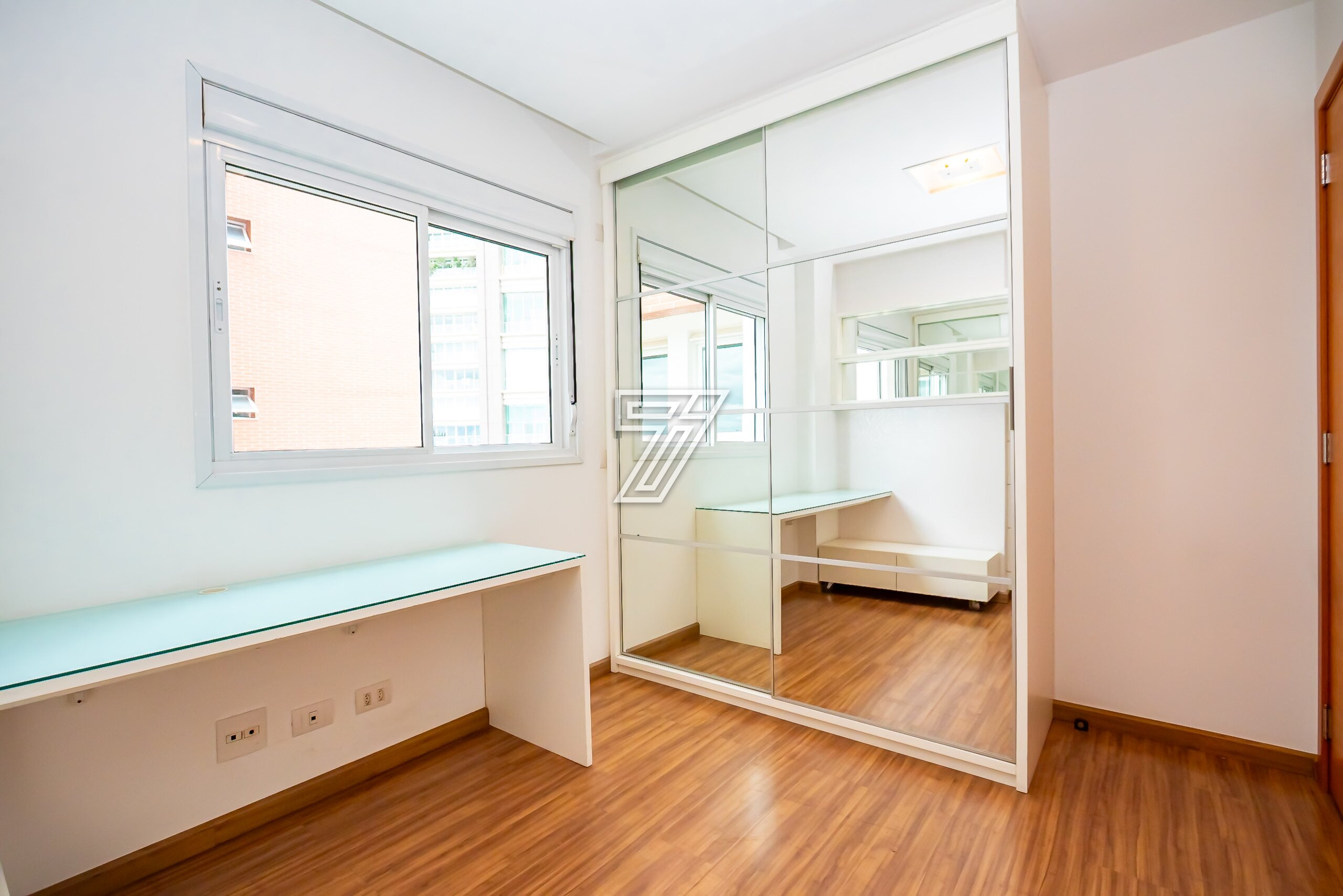Apartamento 128m² com 3 quartos e três banheiros, sendo 1 suíte, 1 lavabo e com armários fixos em todos os cômodos e ar condicionados. Possui despensa.