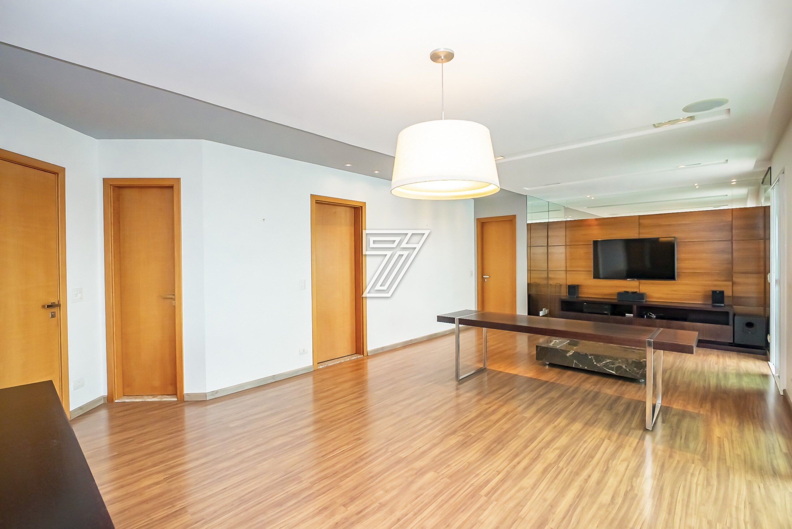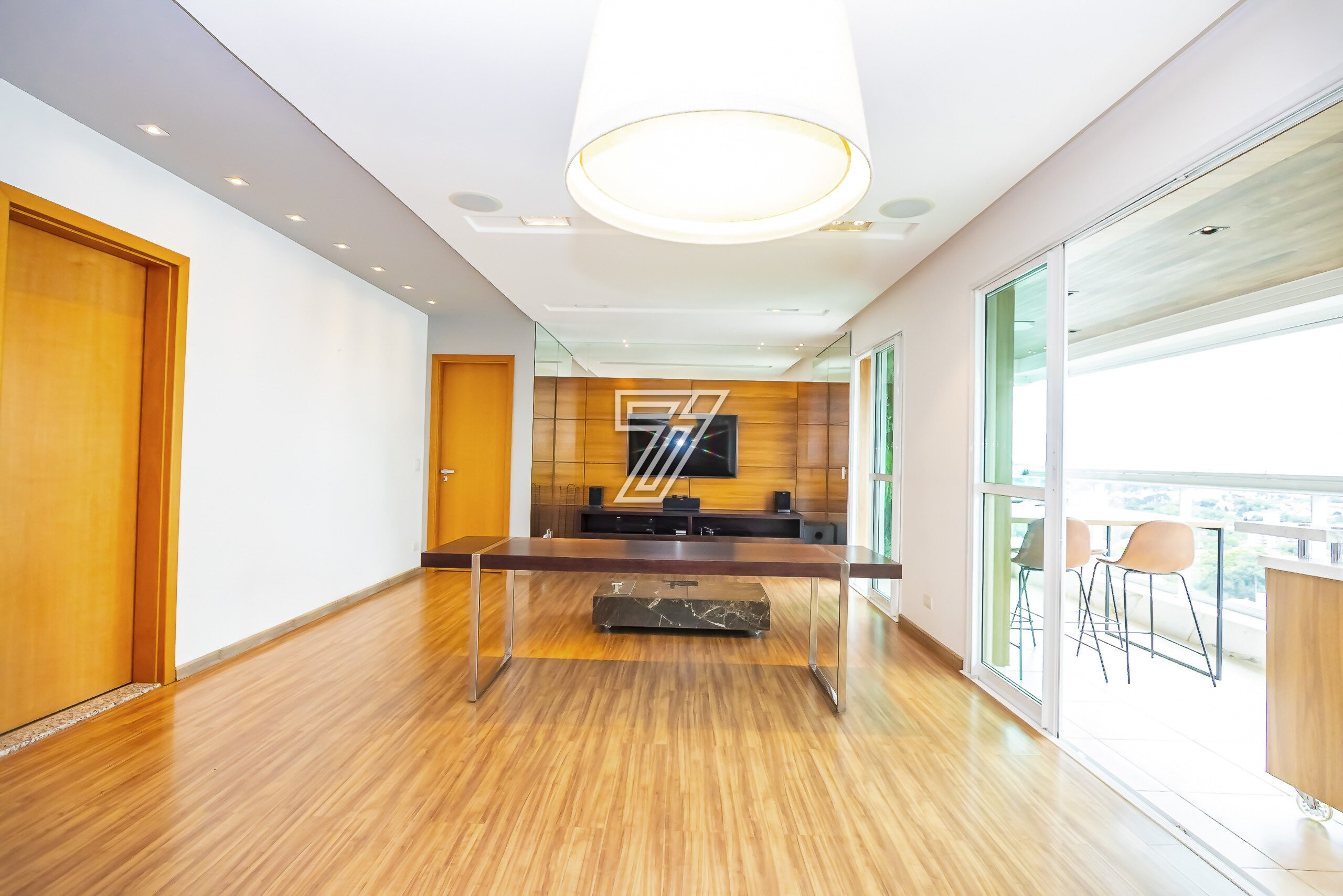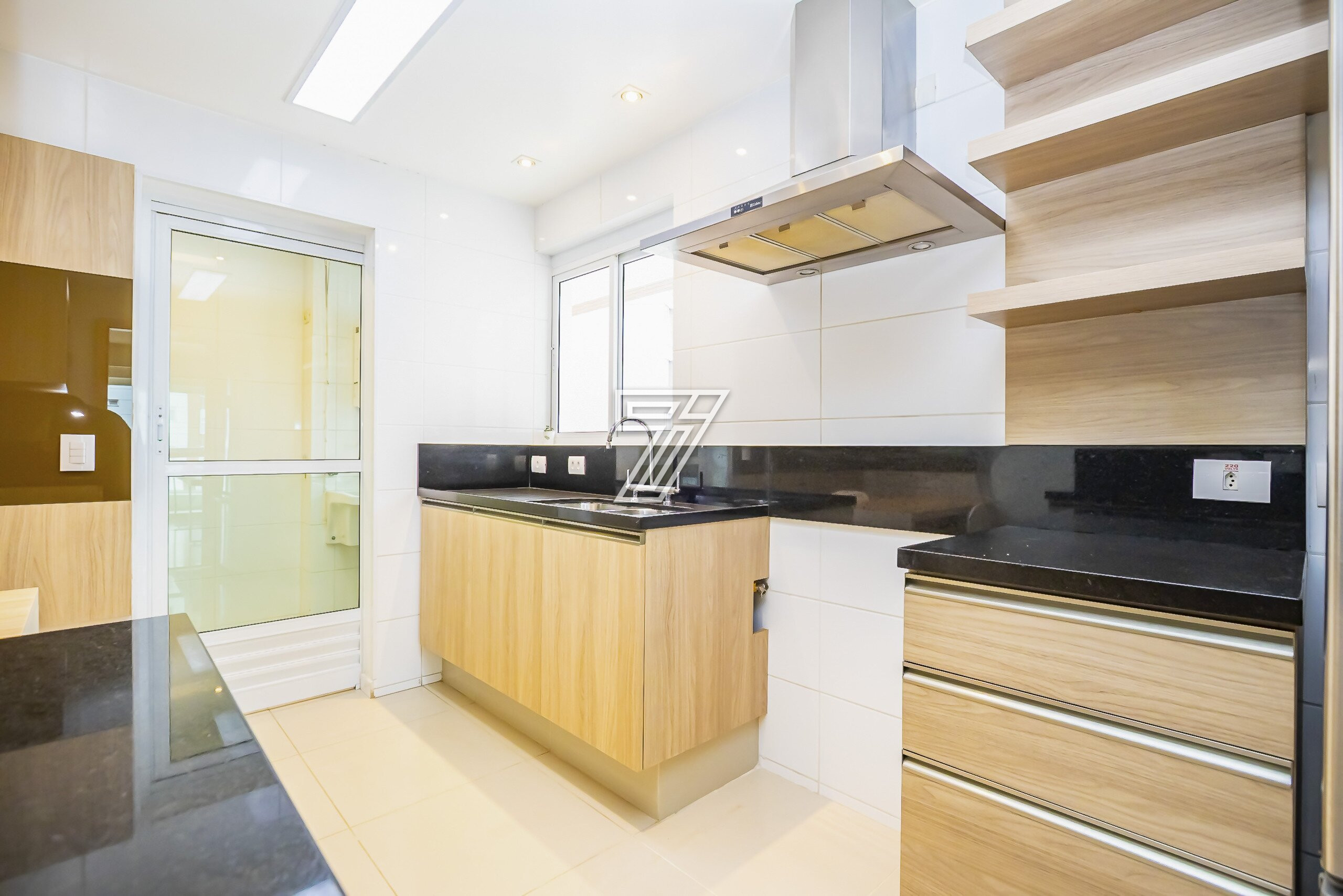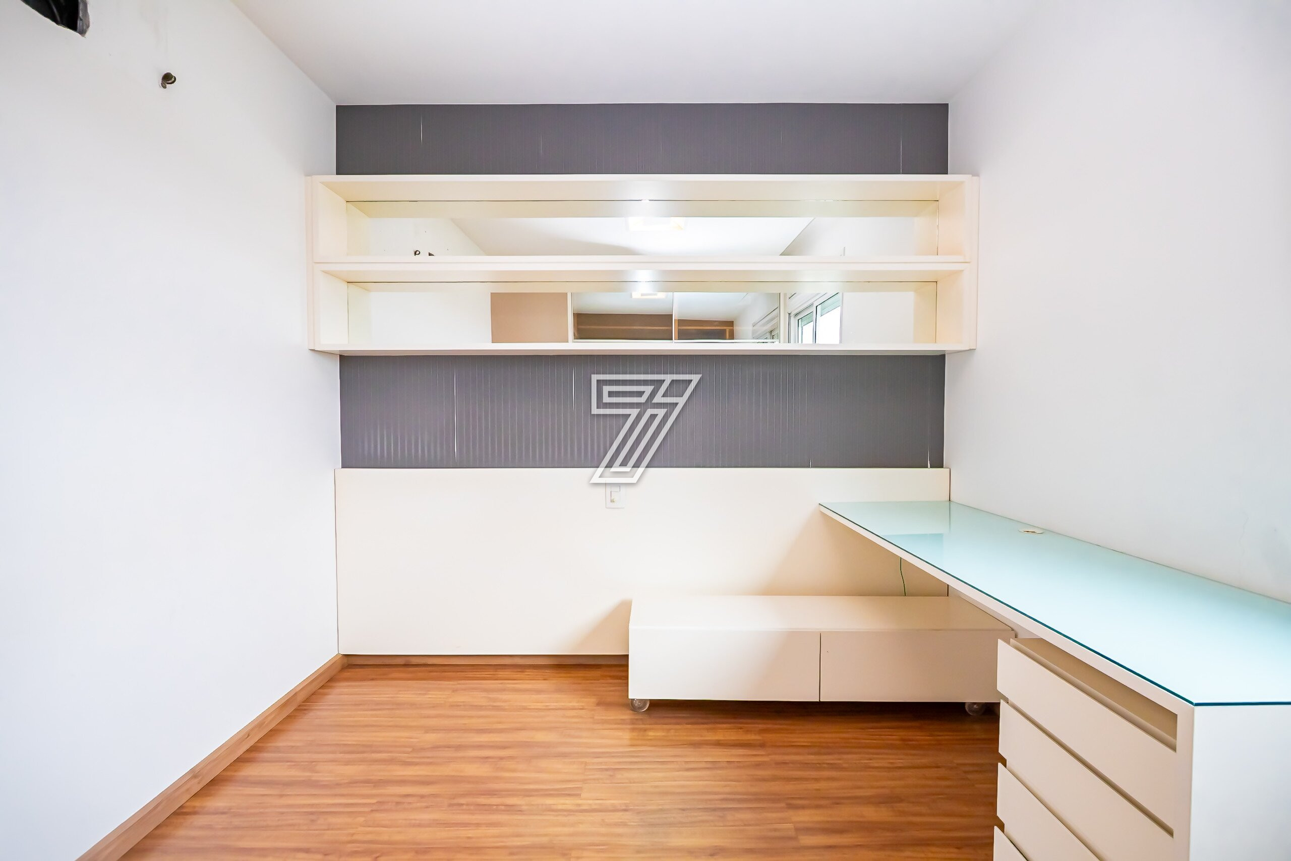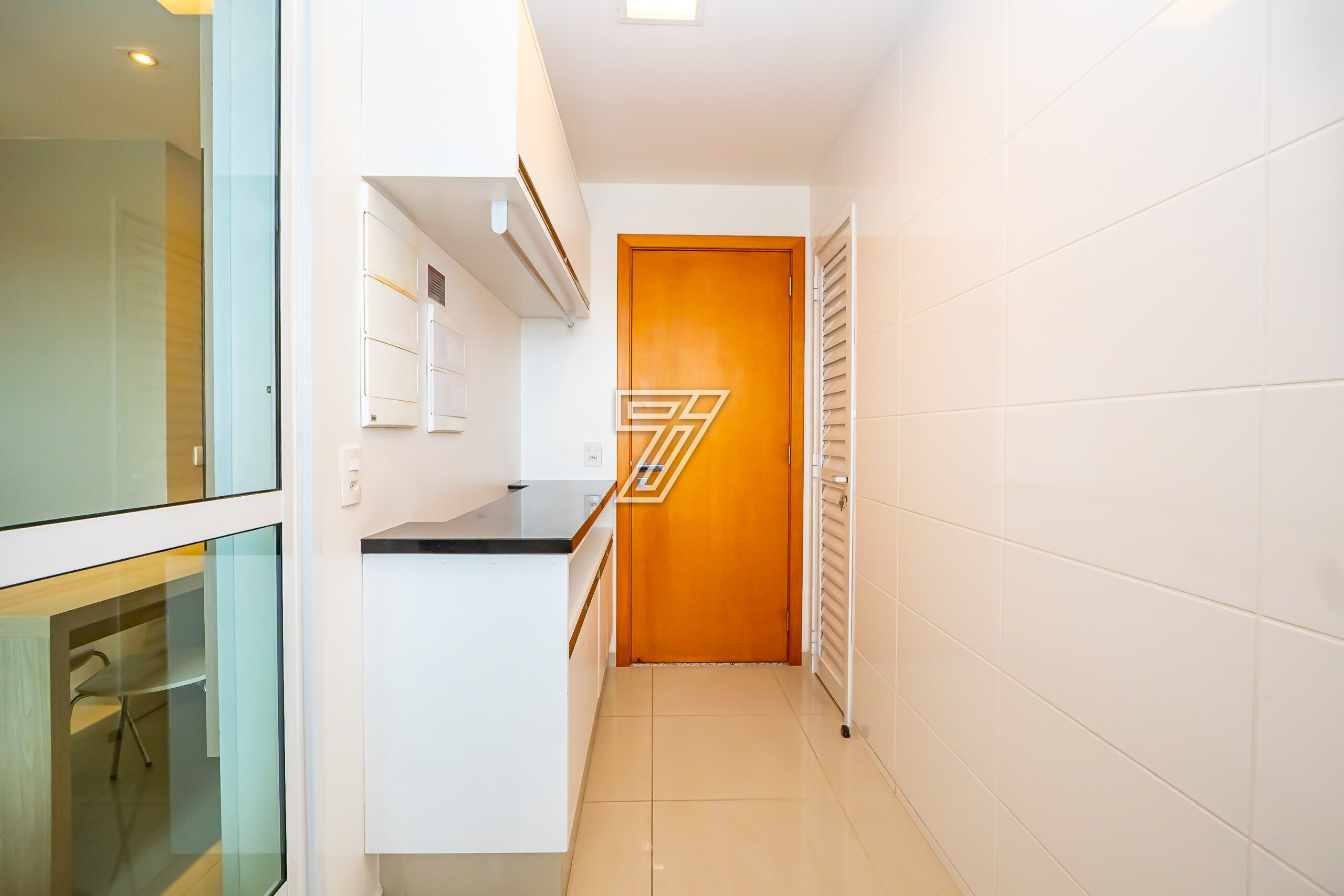 Apartamento 128m² com 3 quartos e três banheiros, sendo 1 suíte, 1 lavabo e com armários fixos em todos os cômodos e ar condicionados. Possui despensa.