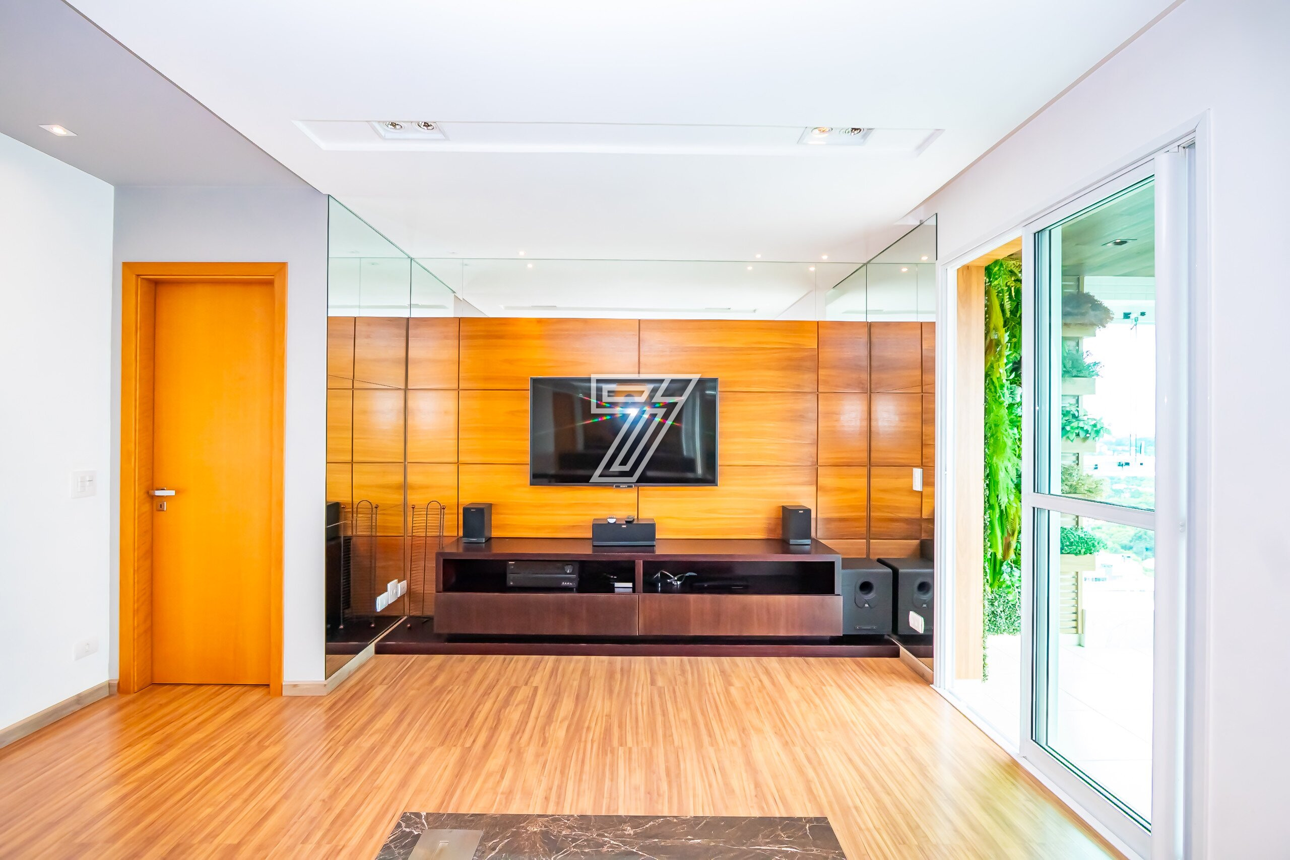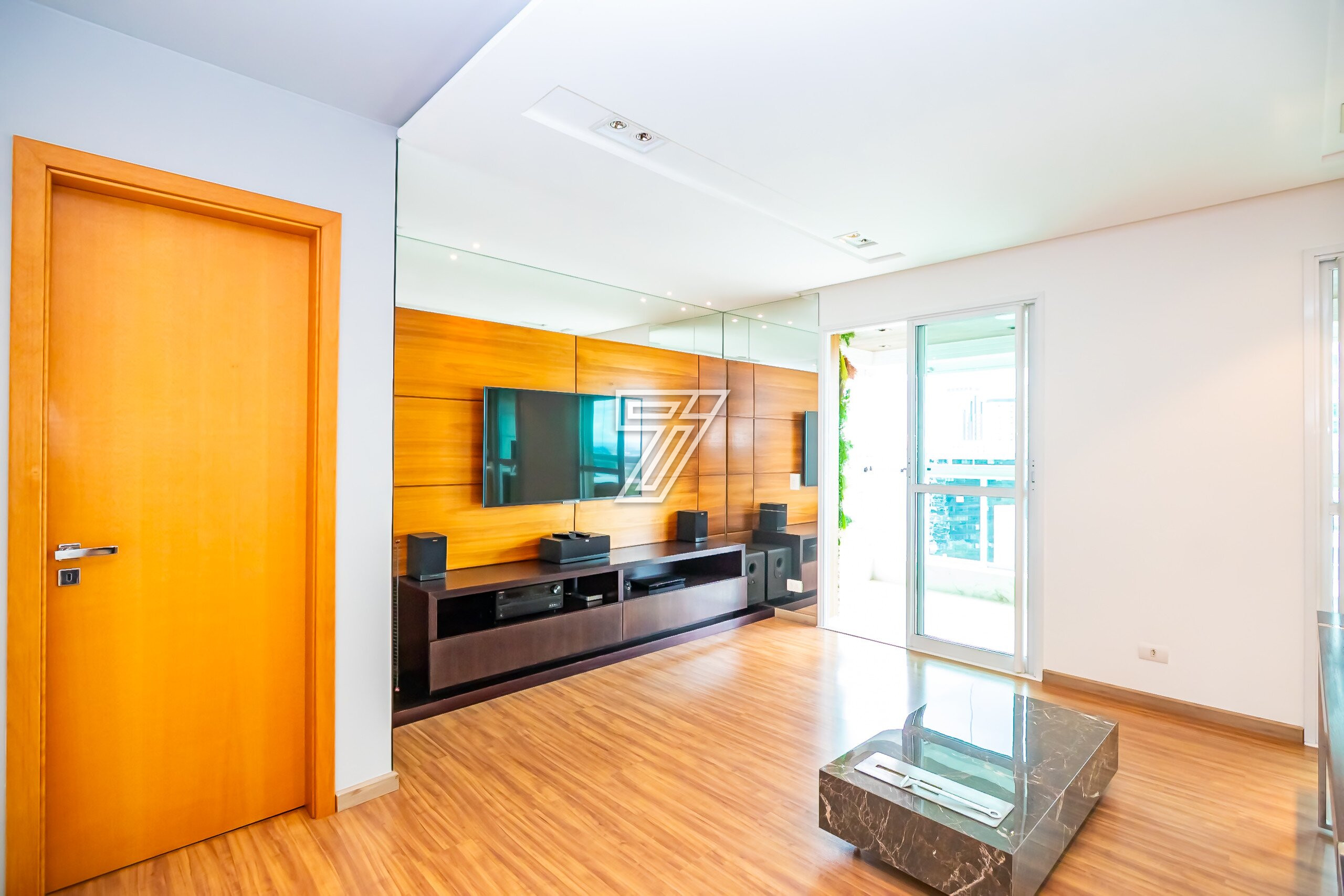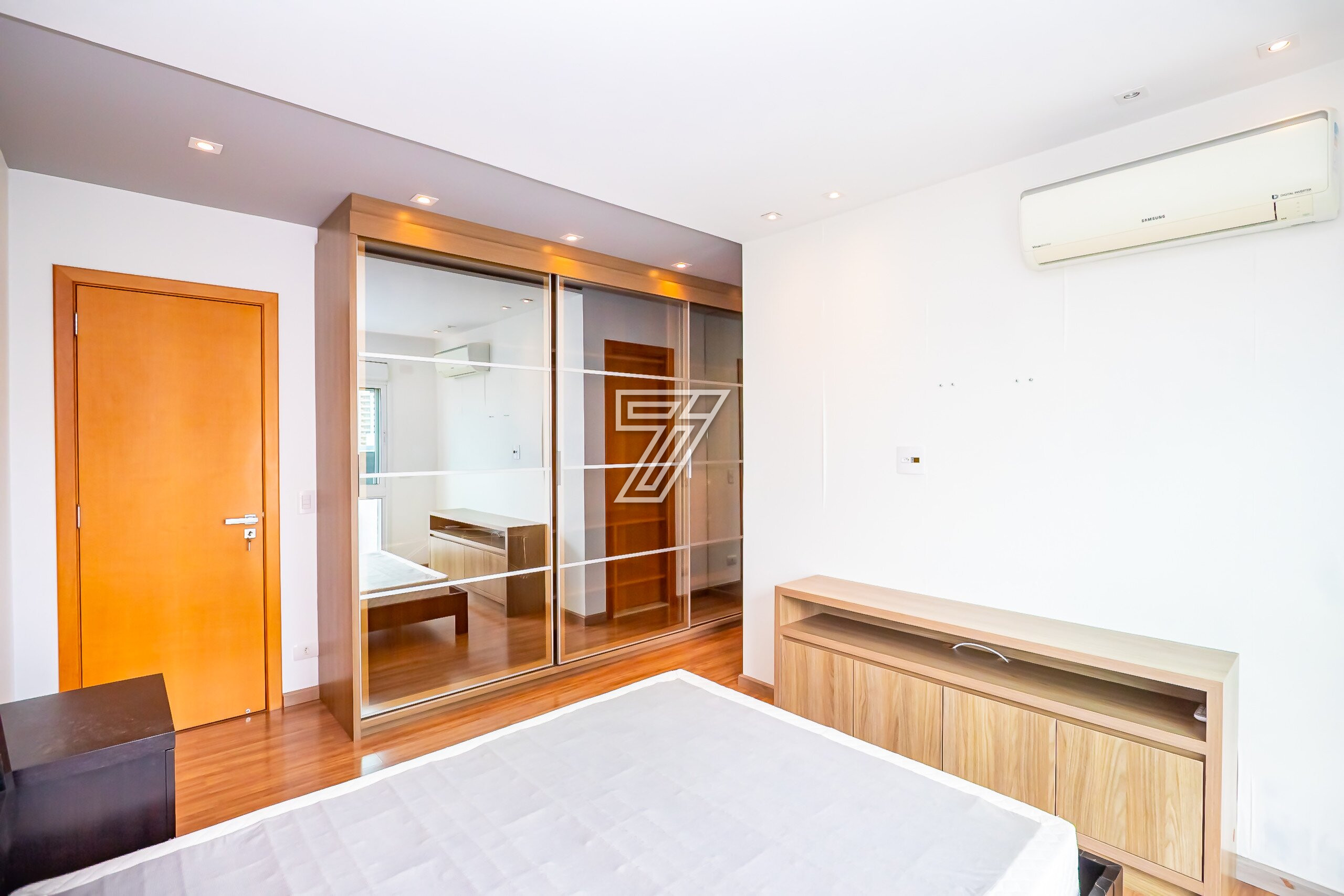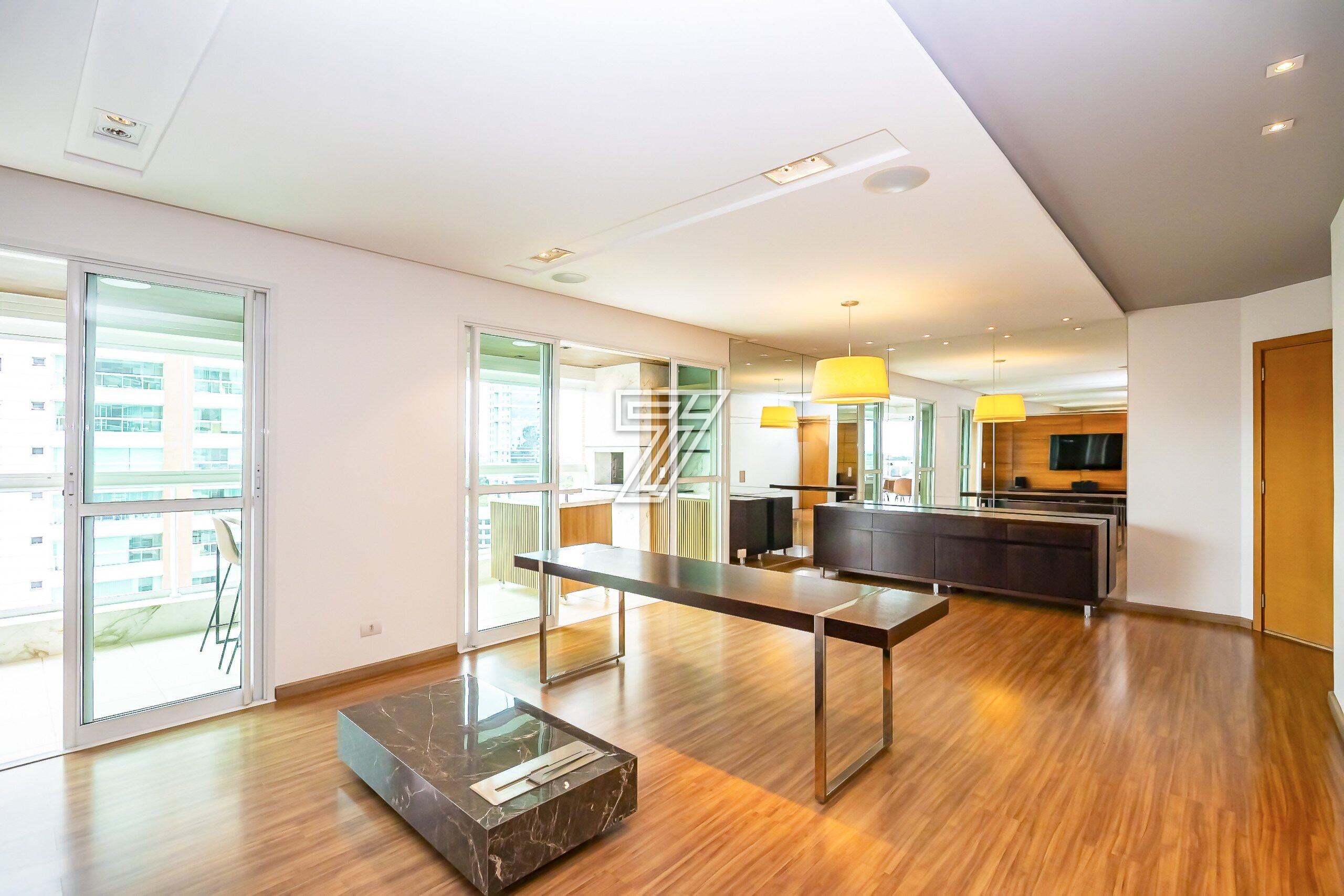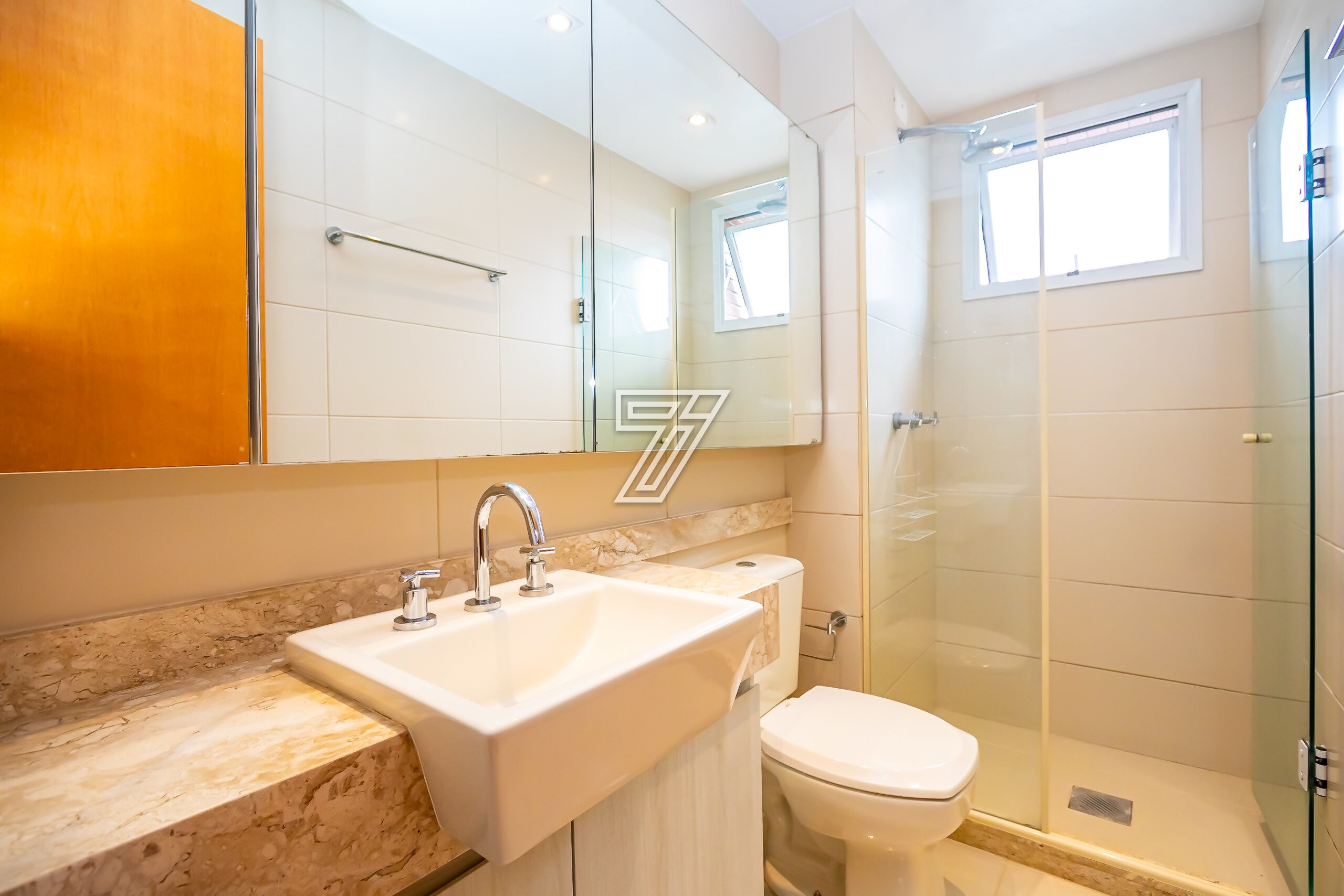 Apartamento 128m² com 3 quartos e três banheiros, sendo 1 suíte, 1 lavabo e com armários fixos em todos os cômodos e ar condicionados. Possui despensa.