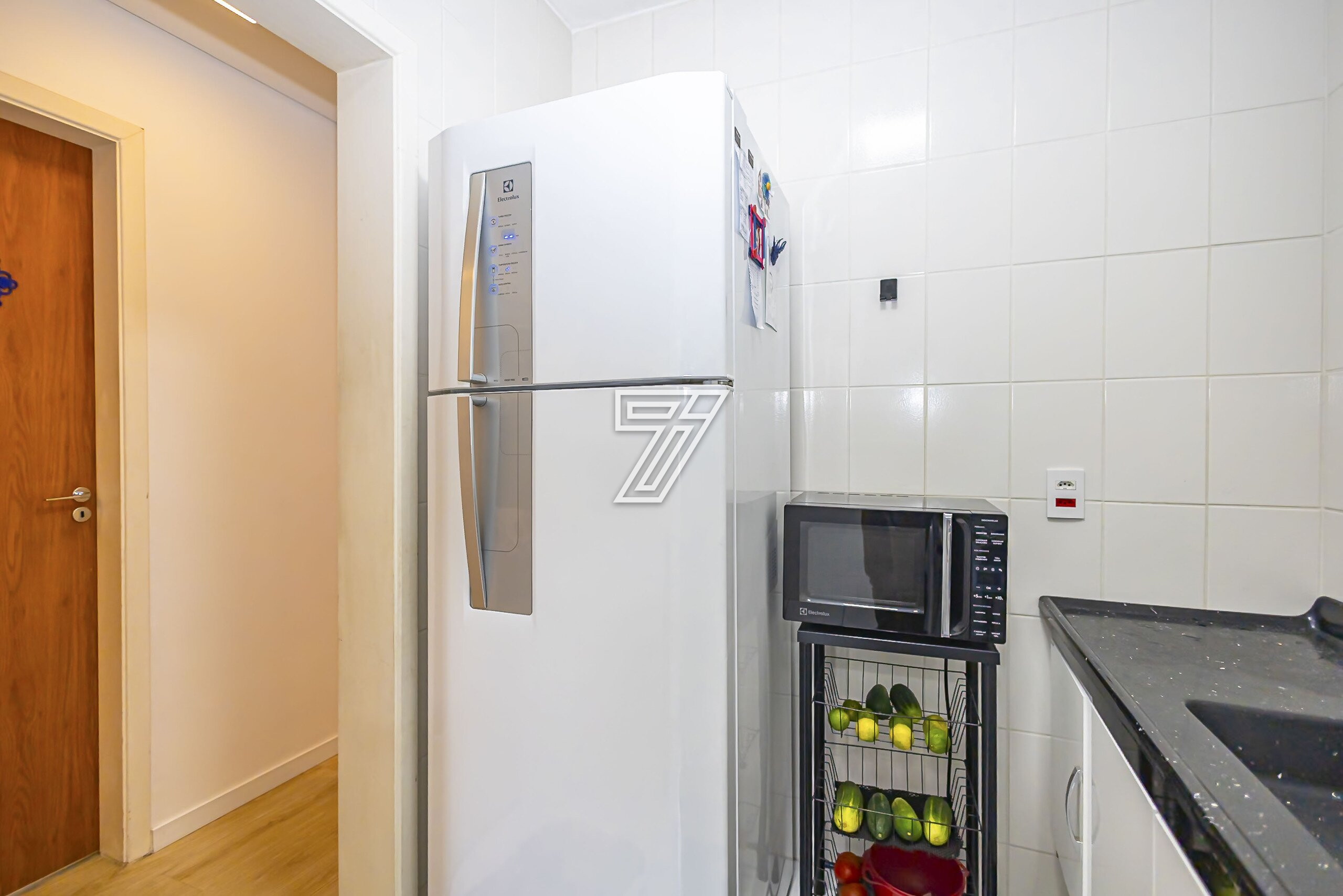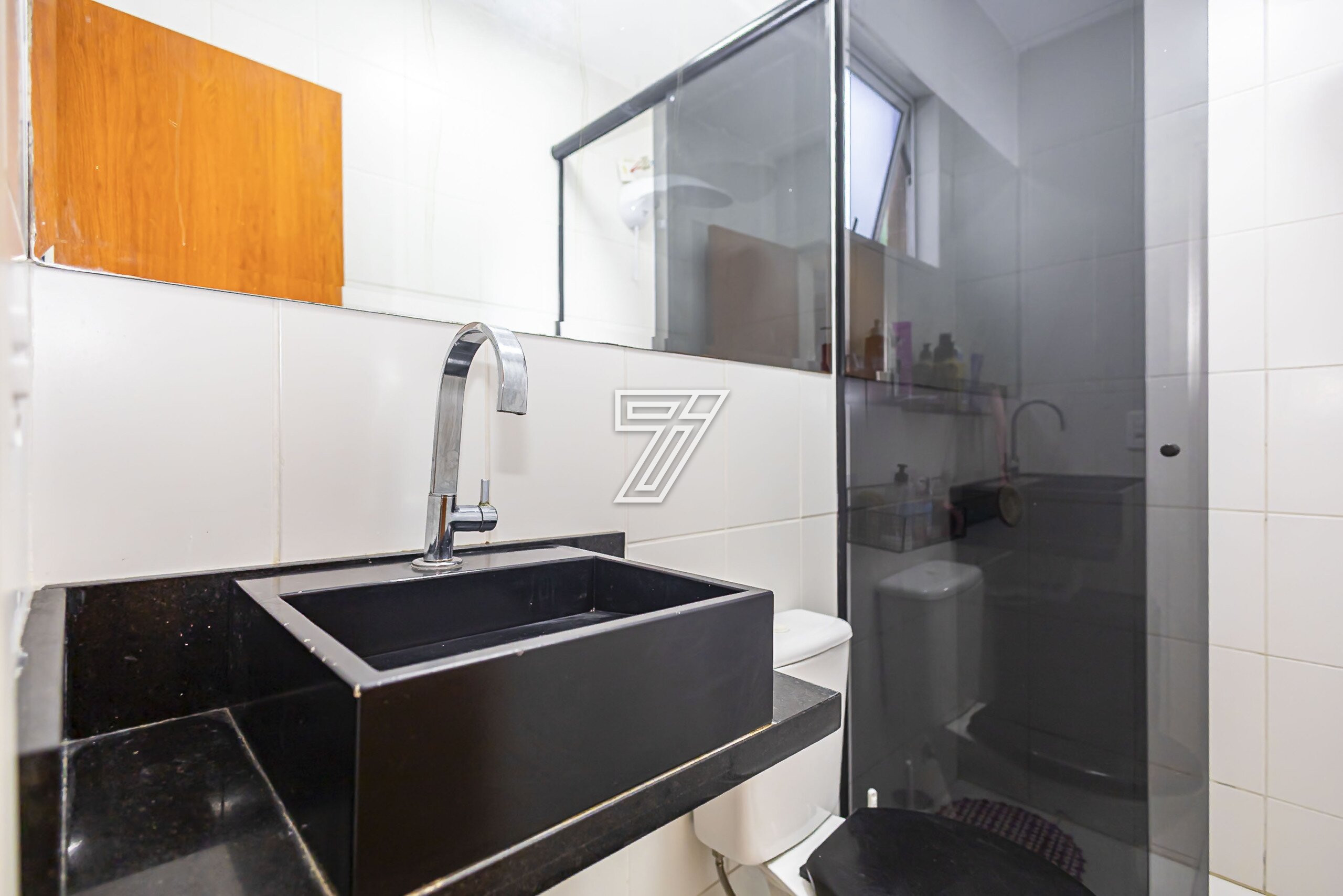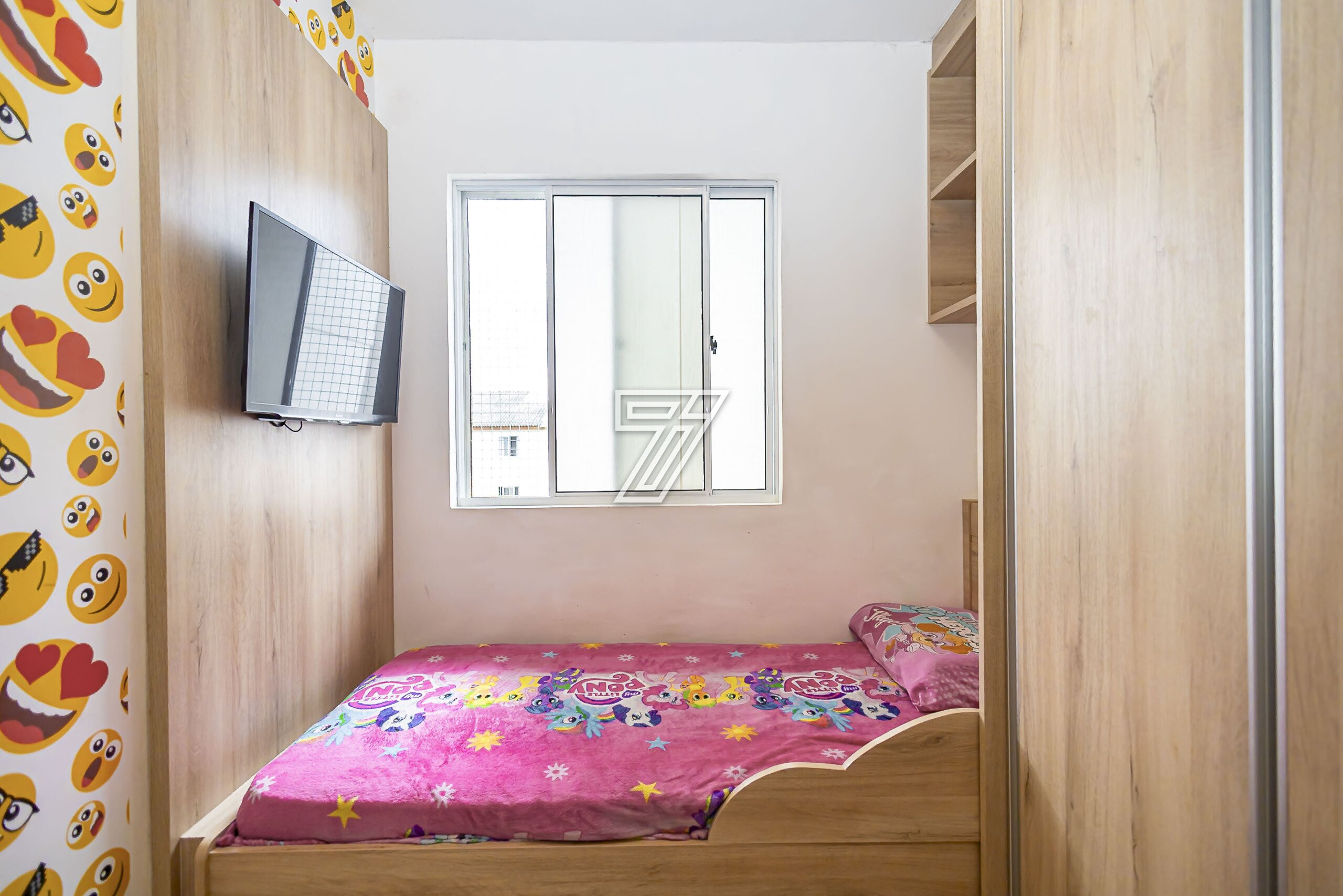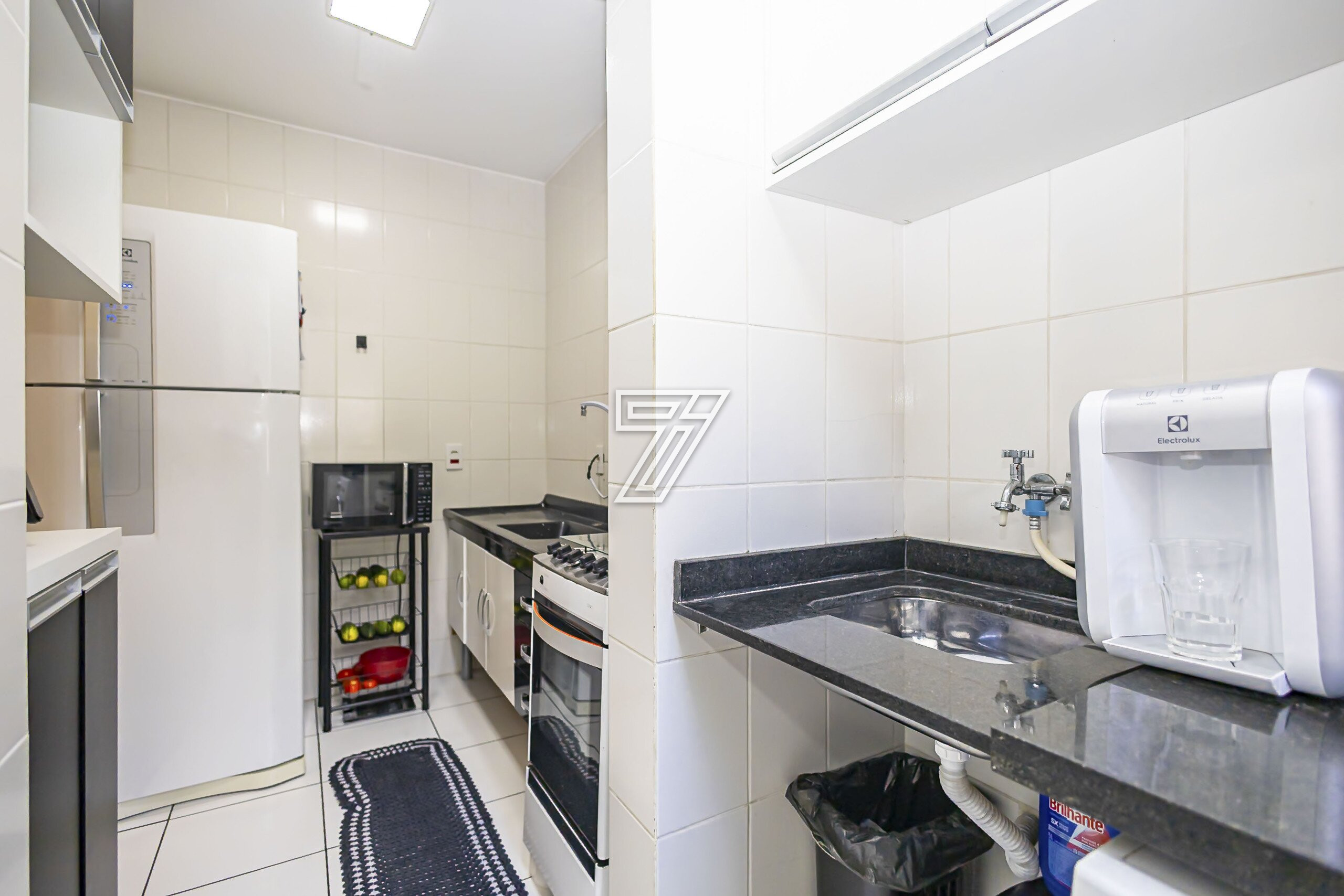 Imóvel com excelente padrão de acabamento, sala com teto rebaixado em gesso, espelho, rack e papel de parede, 3 quartos (2 com móveis planejados e camas embutidas), piso vinílico impecável na área social e íntima, banheiro com box blindex e bancada em granito, cozinha e área de serviço com armários planejados.