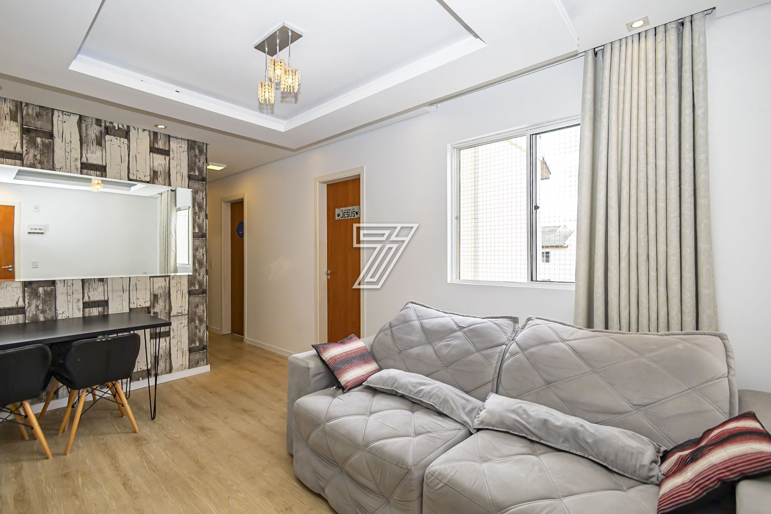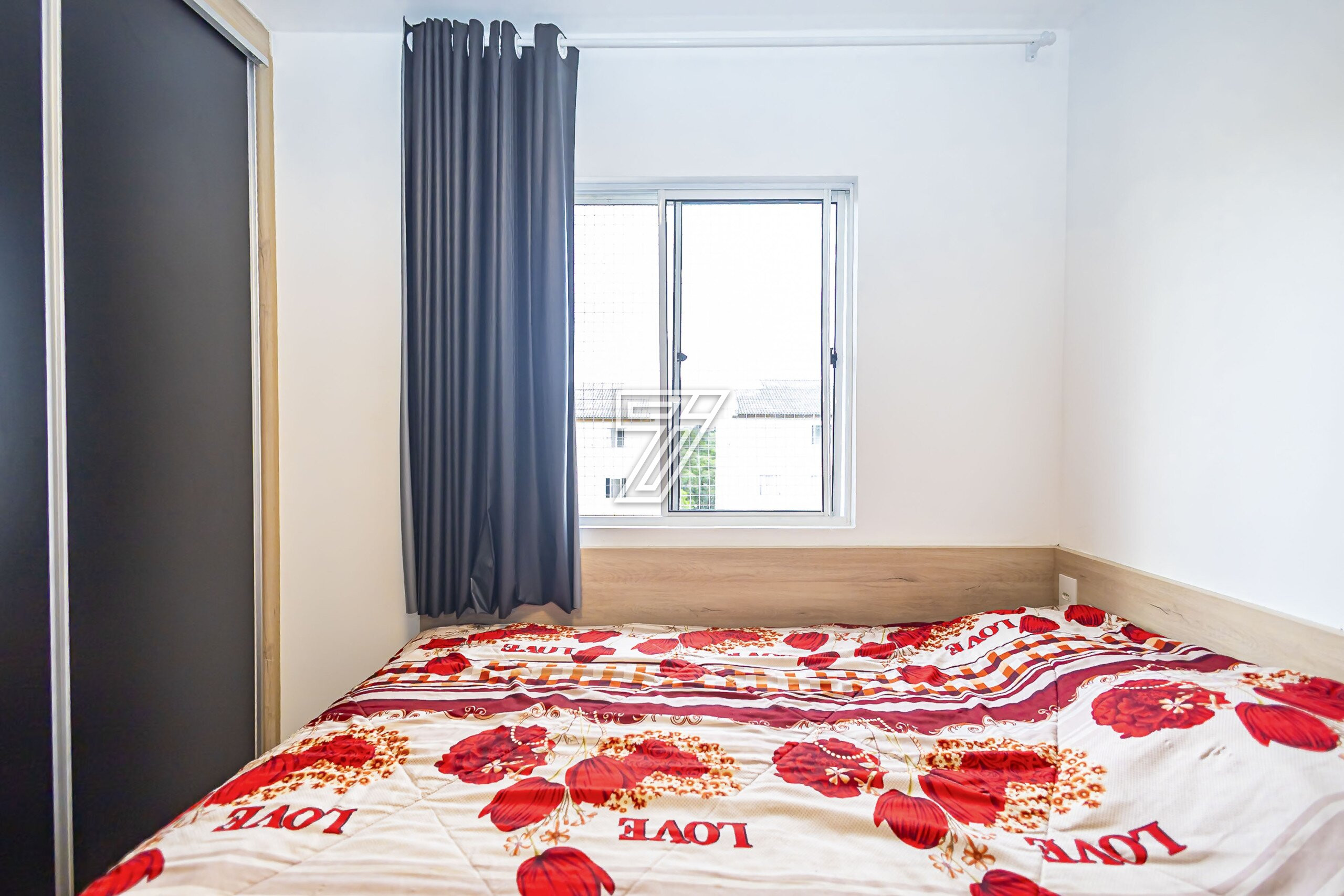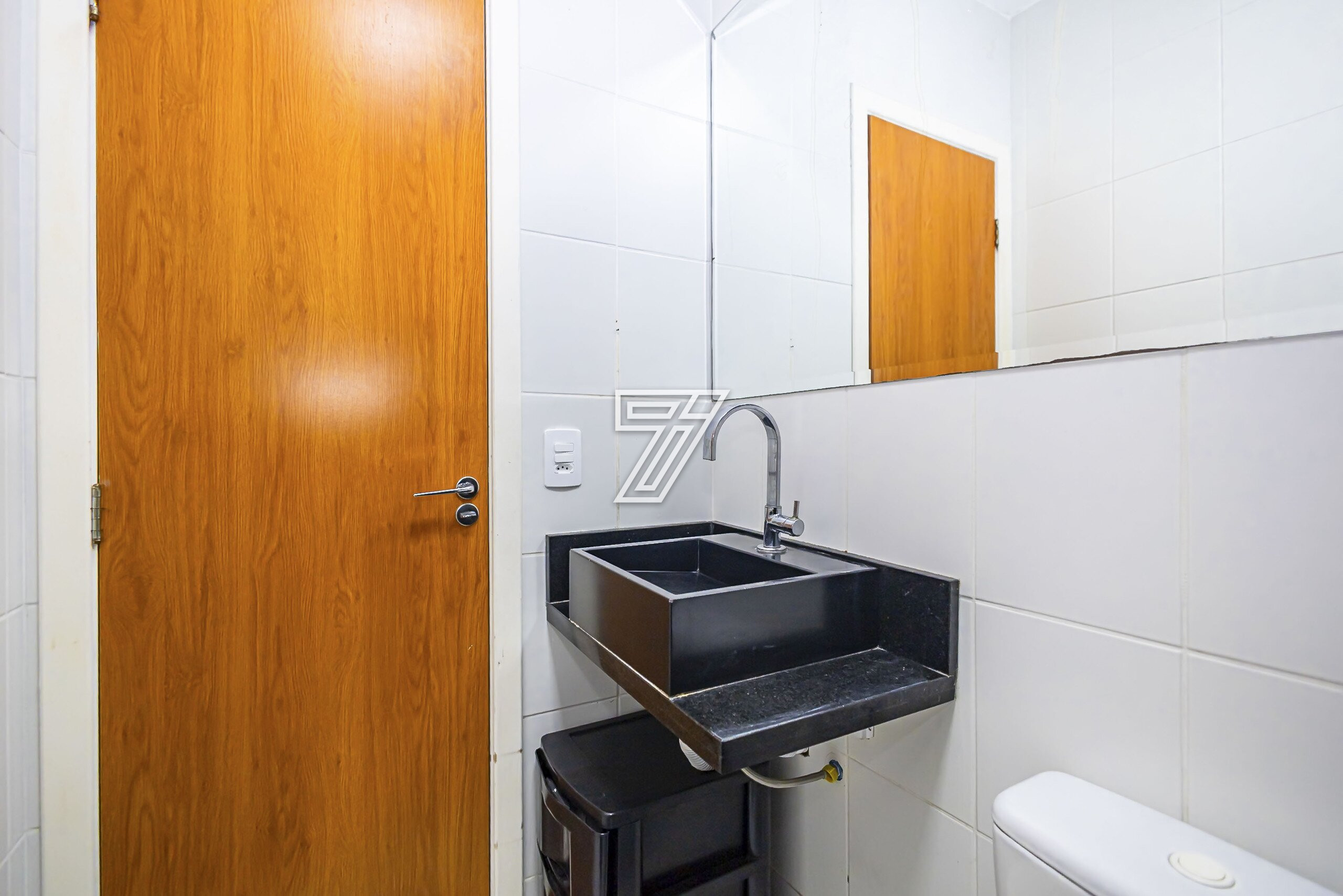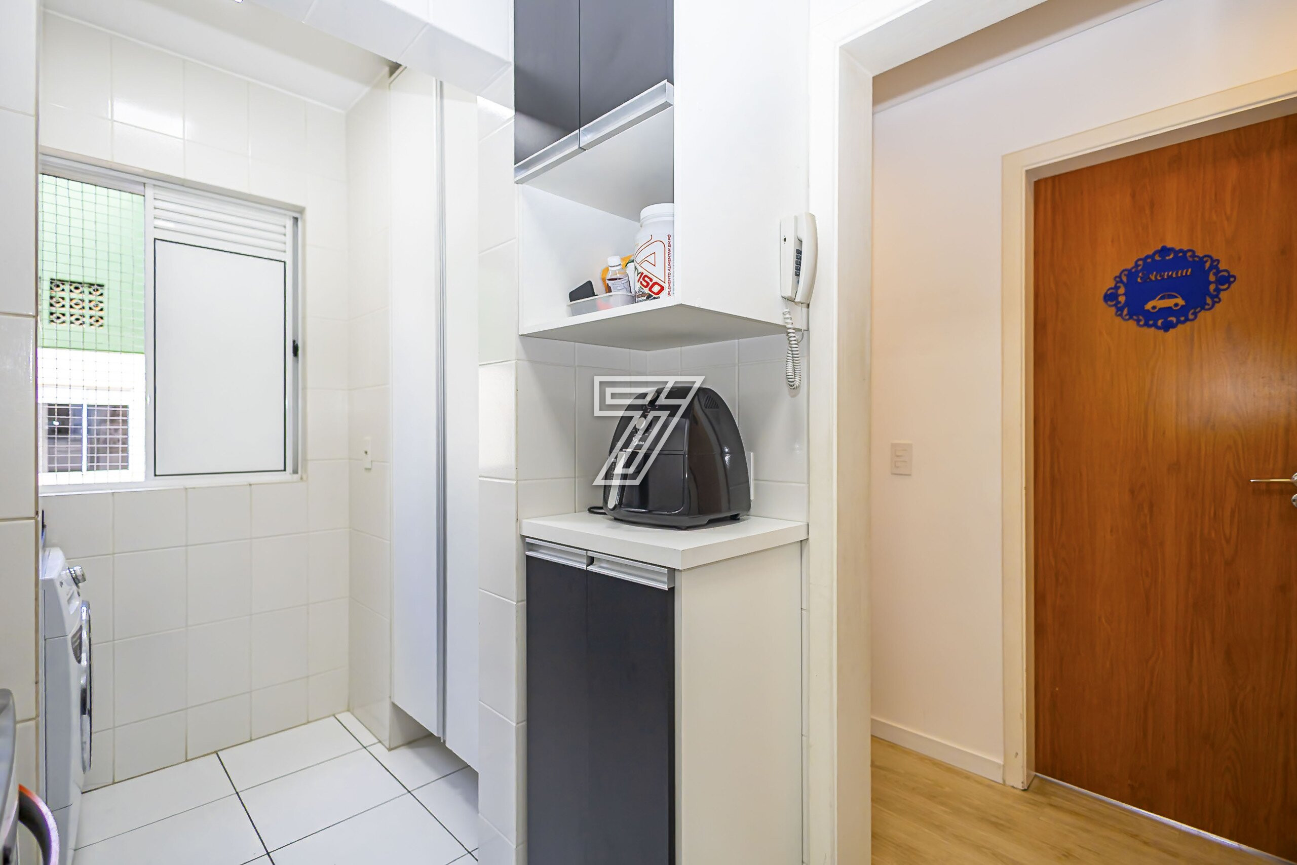 Imóvel com excelente padrão de acabamento, sala com teto rebaixado em gesso, espelho, rack e papel de parede, 3 quartos (2 com móveis planejados e camas embutidas), piso vinílico impecável na área social e íntima, banheiro com box blindex e bancada em granito, cozinha e área de serviço com armários planejados.