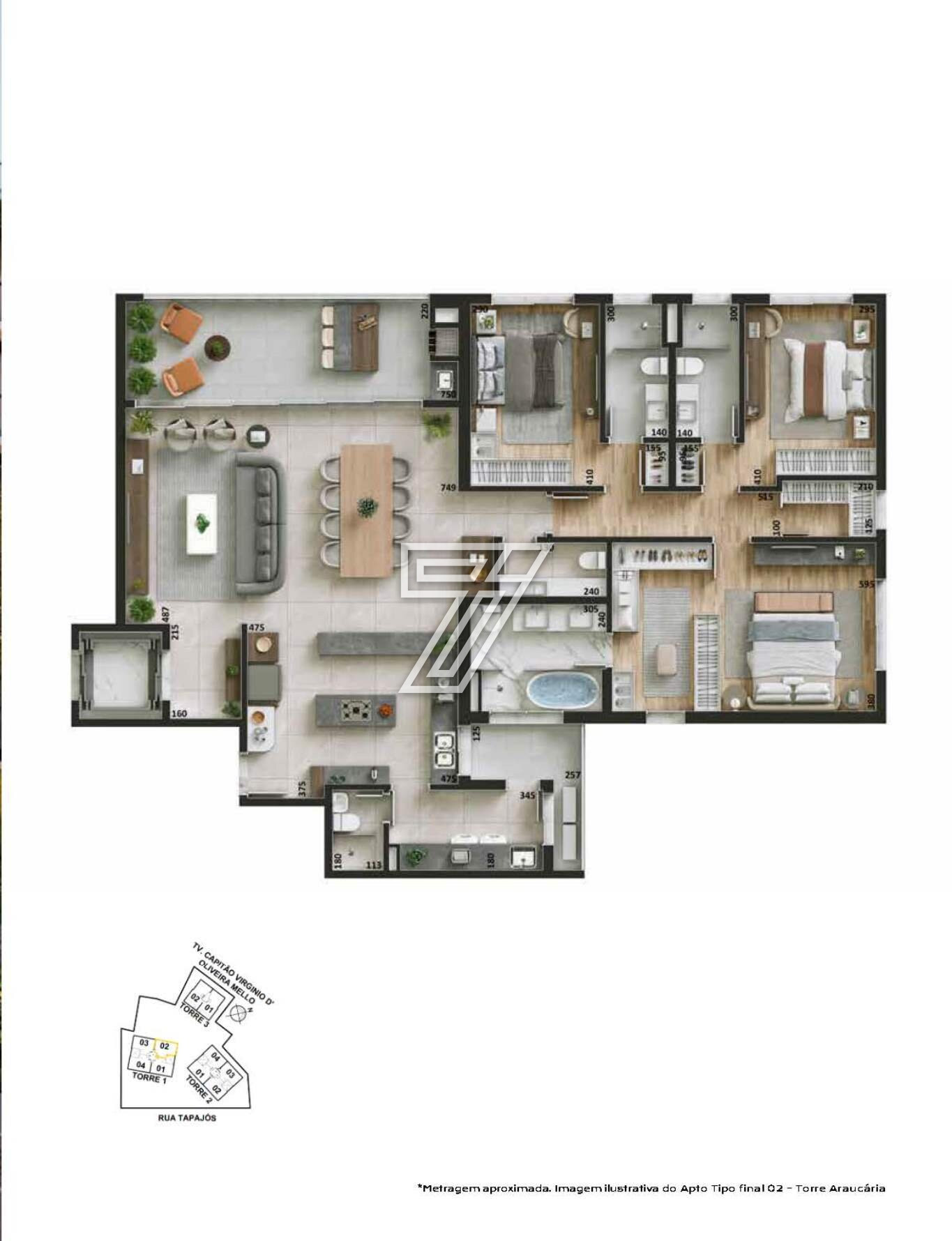 3 torres (T1-Araucária / T2-Jerivá / T3-Paineira)