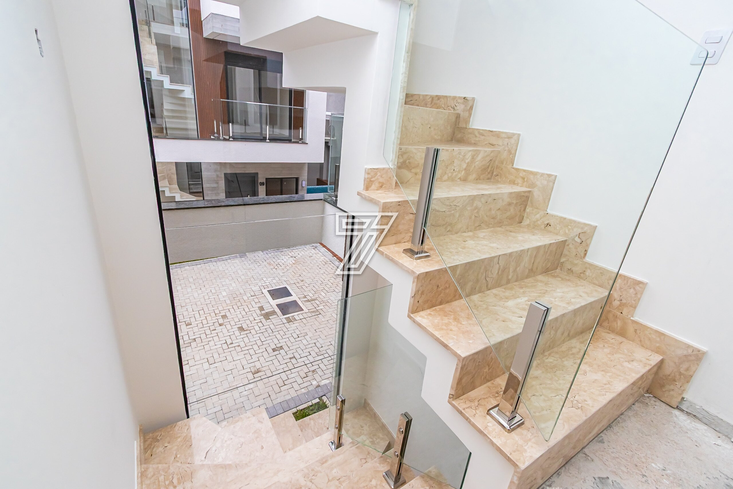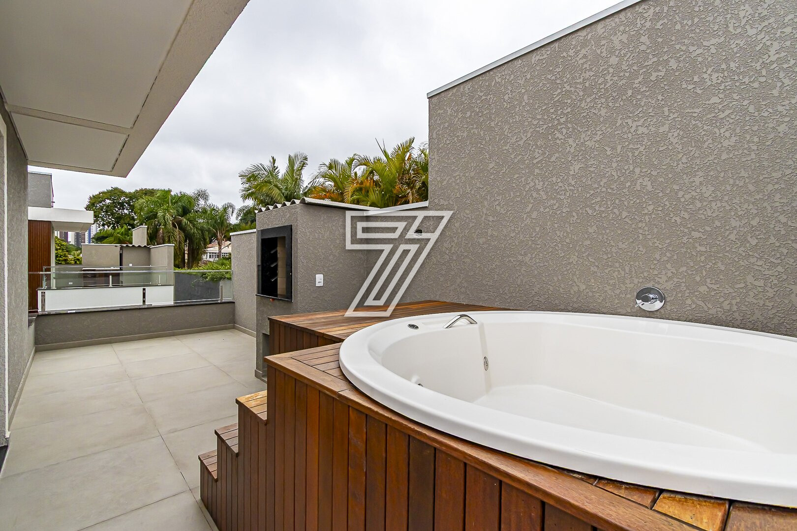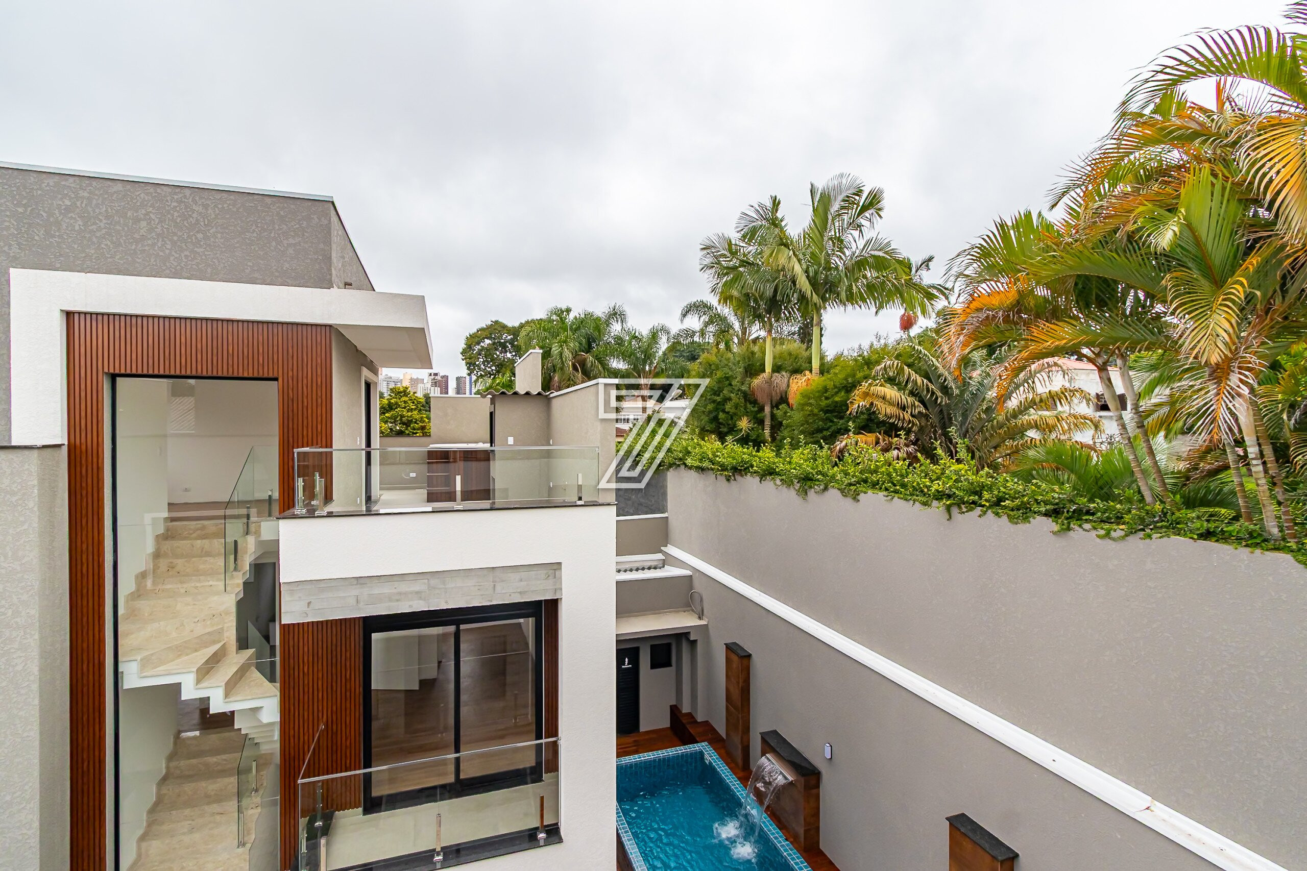 Imóvel com excelente padrão de acabamento, já entregue com porcelanato no piso térreo, acabamentos em mármore e cerâmica em todos os banheiros, escada com acabamento e corrimão em aço escovado e acabamento de vidro, ático com jacuzzi instalada e deck de madeira.