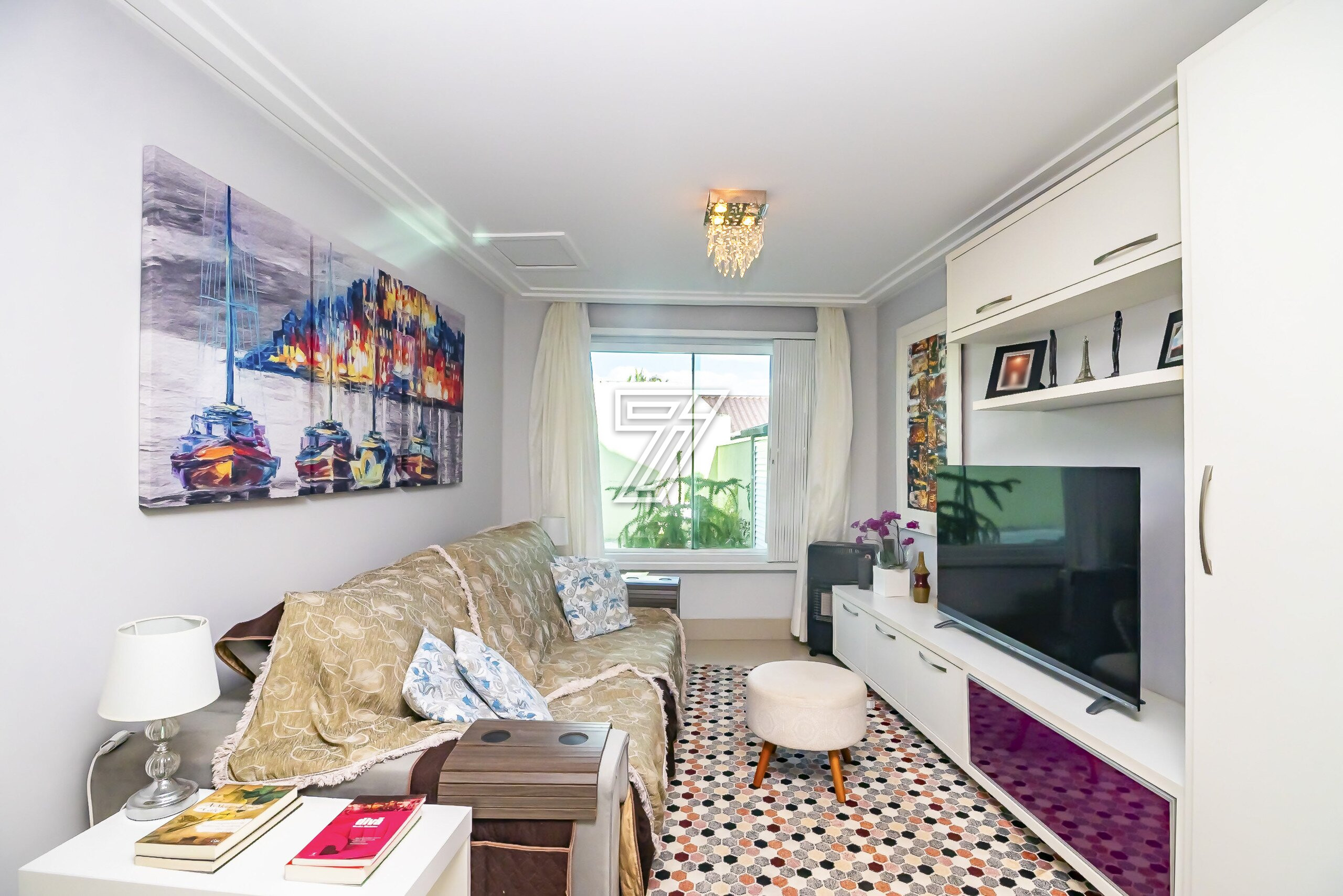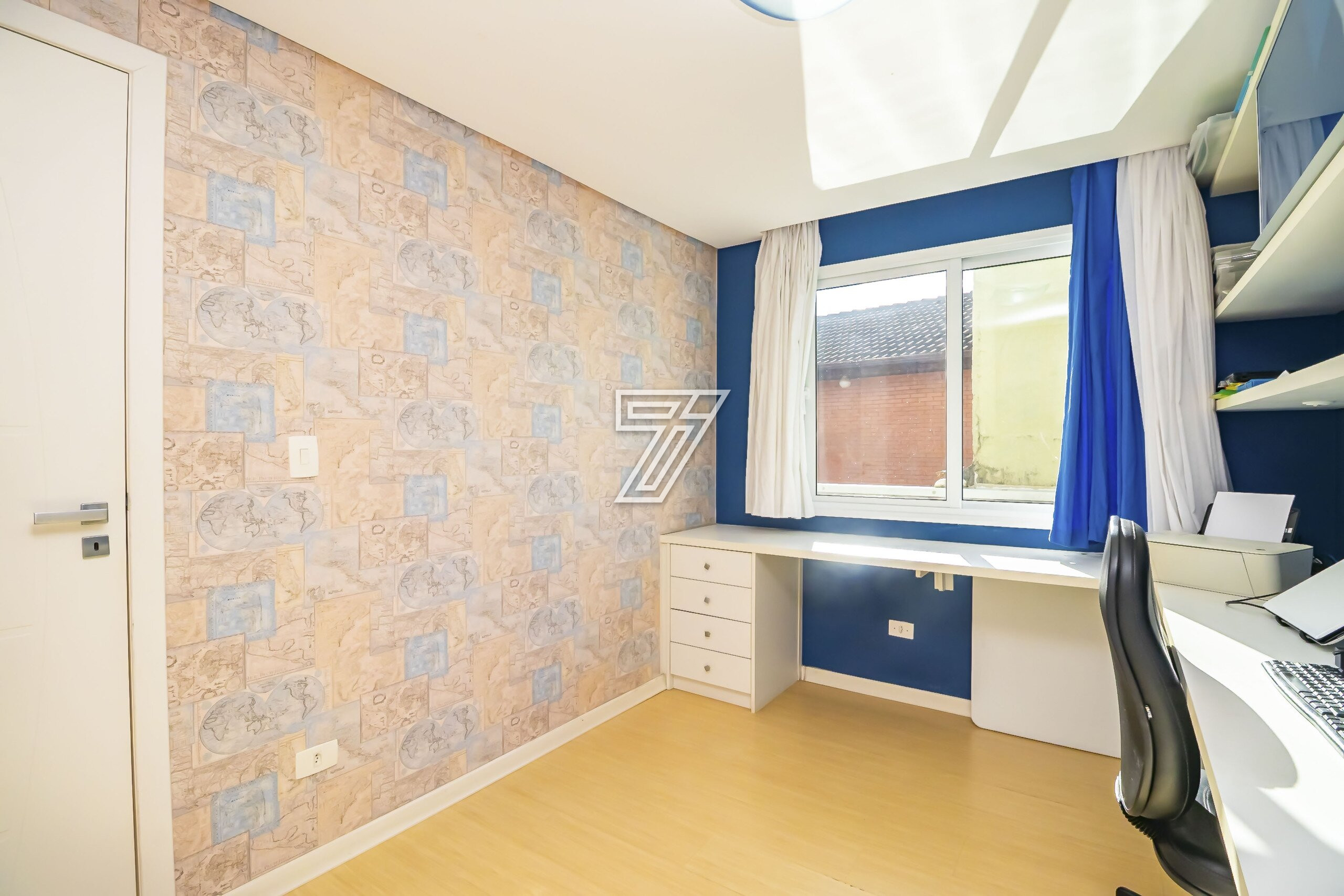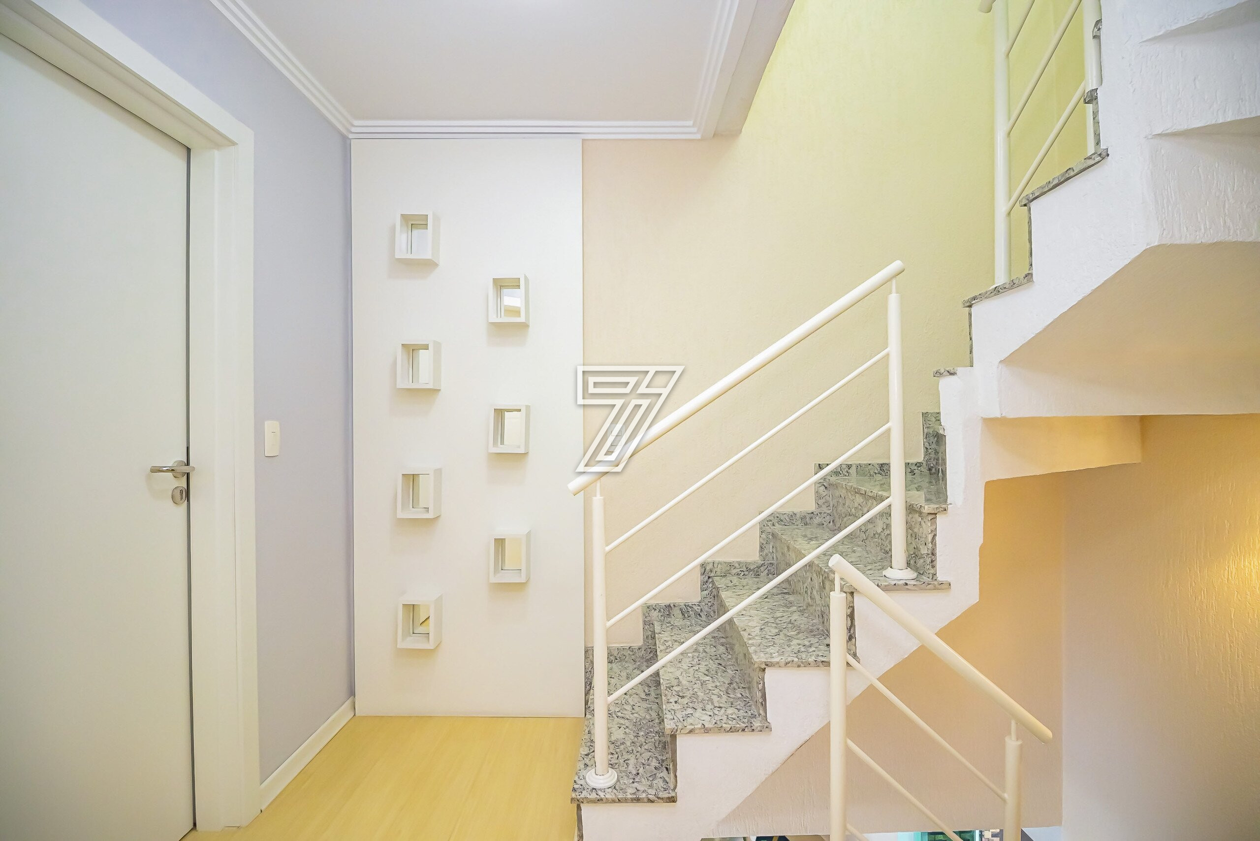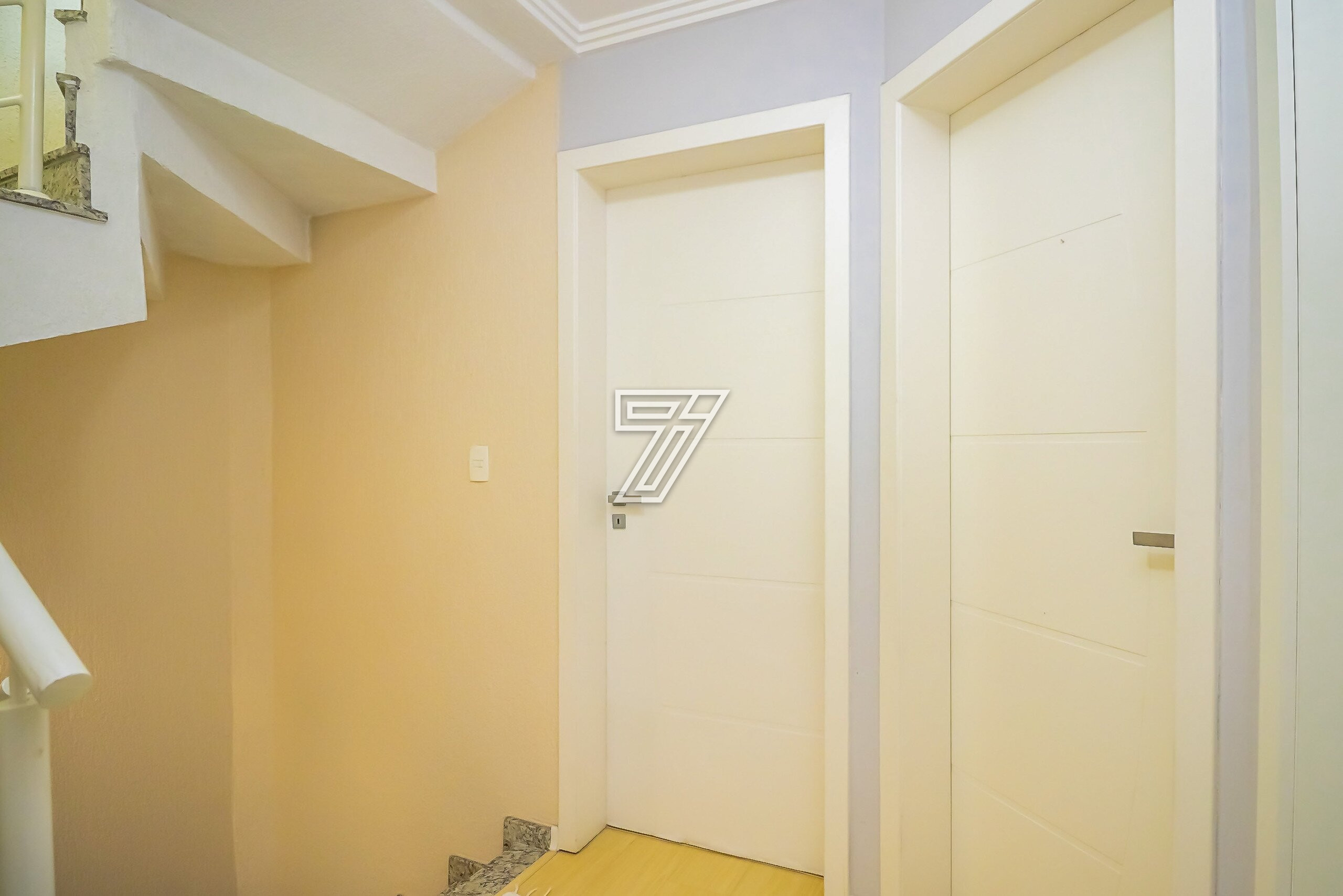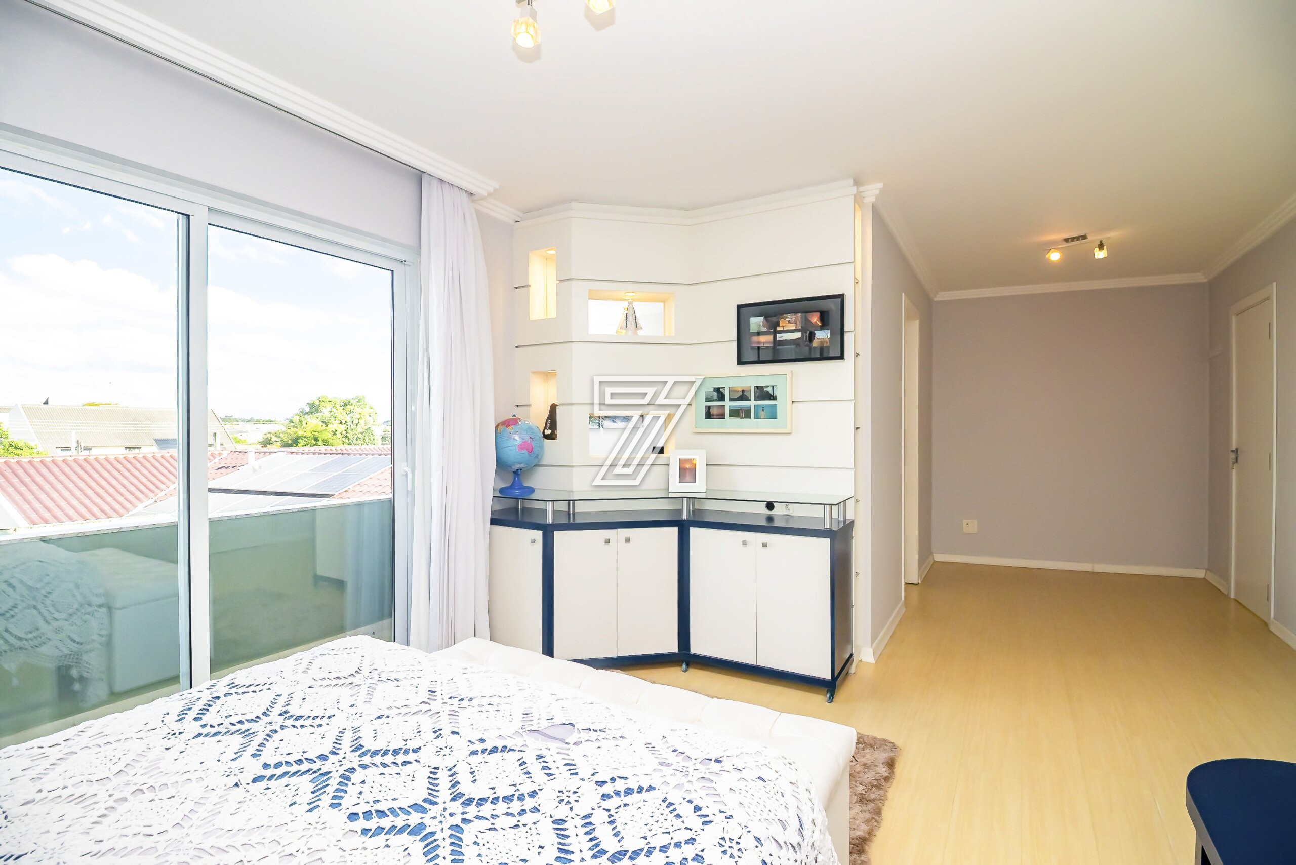 PISO SUPERIOR: hall, banheiro social, ampla suíte com armários (fica cama), bwc com hidromassagem, magnífico closet (dormitório foi transformado em closet/ reversível), porta janela da suíte e demais janelas desse pavimento são de Vidros Duplos propiciando um ótimo conforto de isolamento térmico e acústico, dormitório de solteiro com armários planejados.