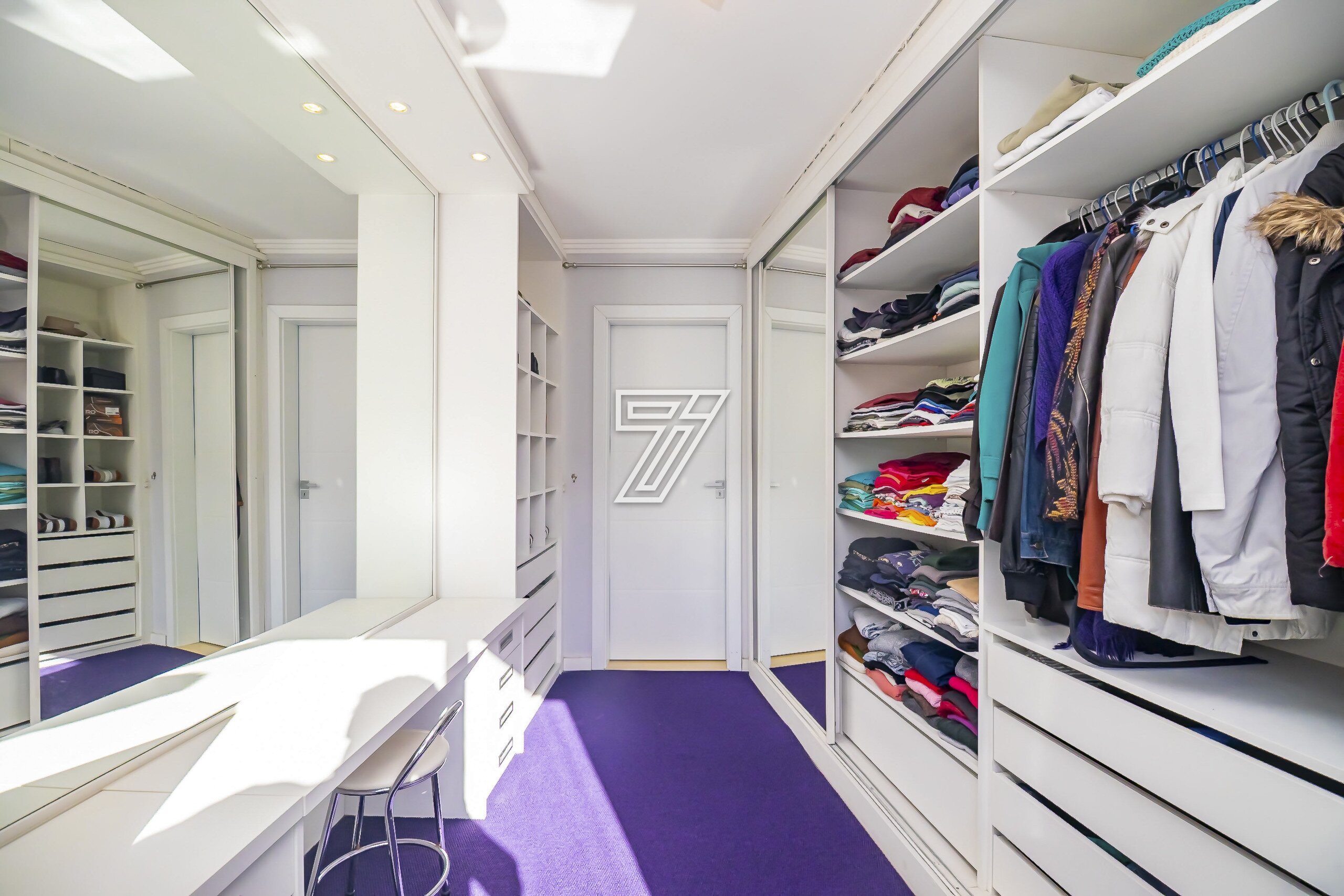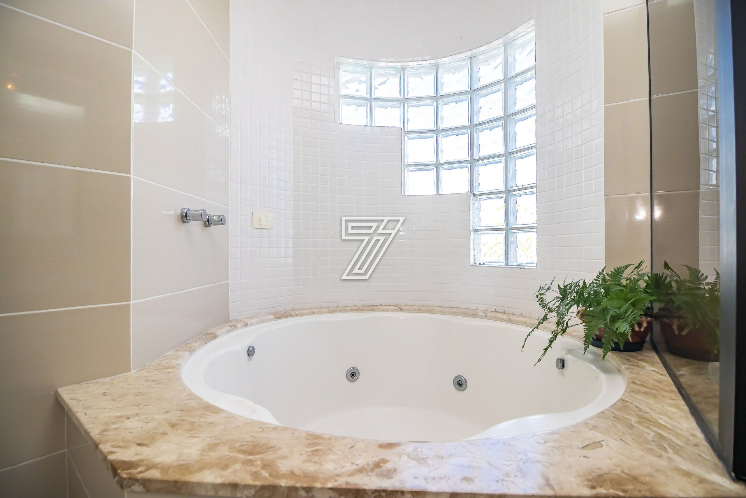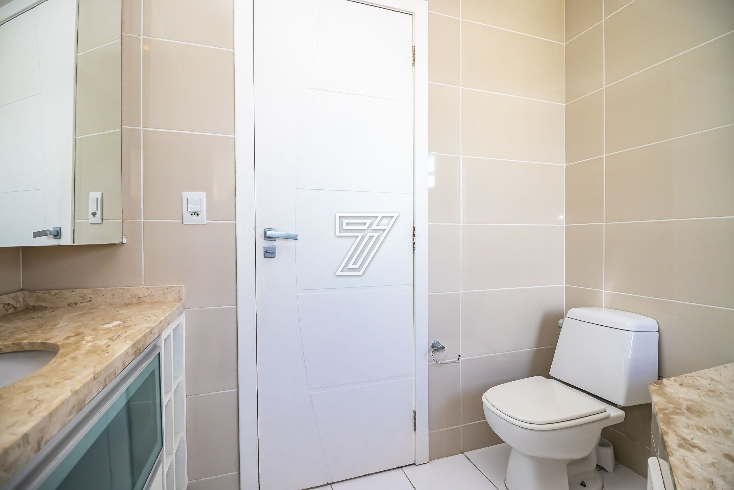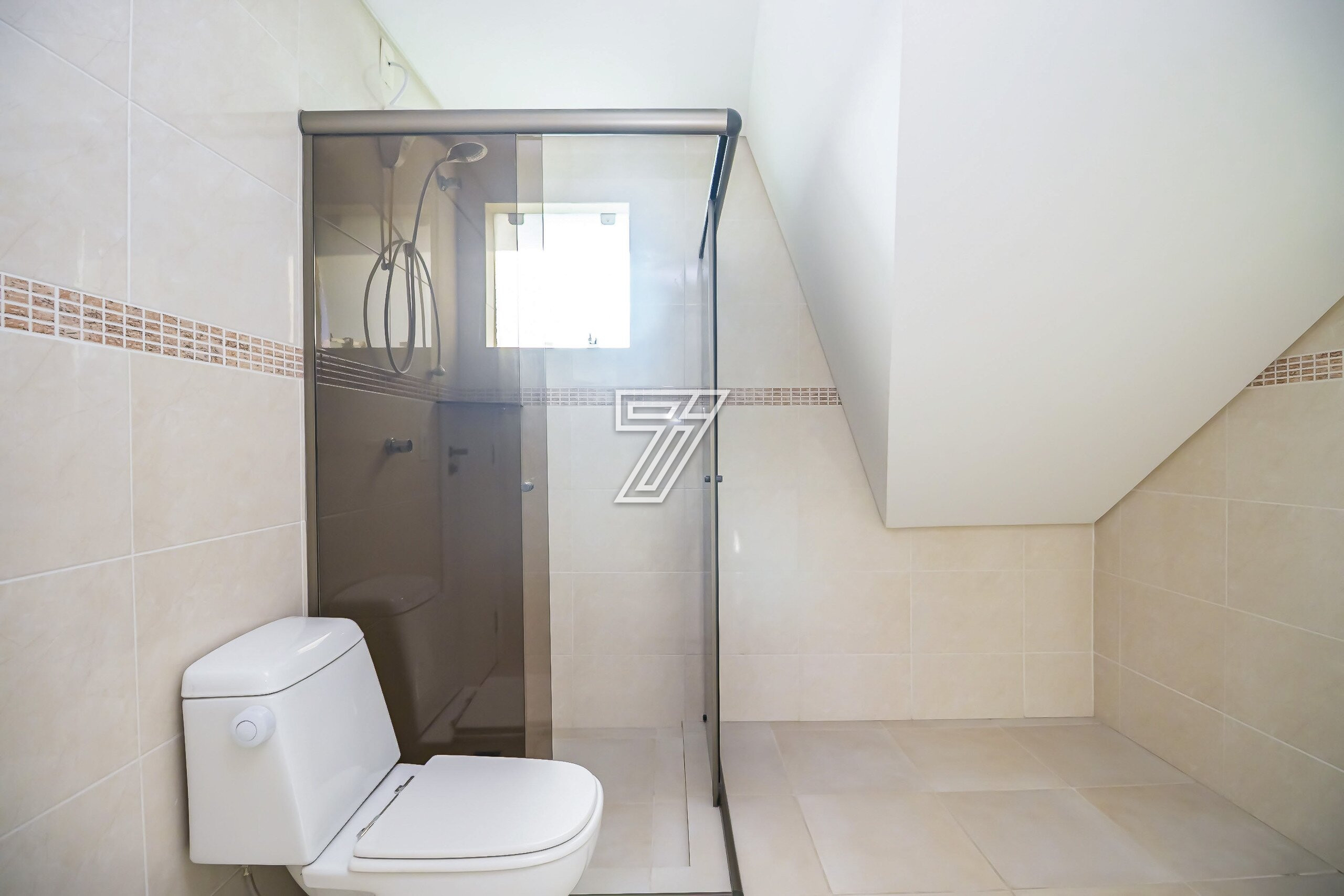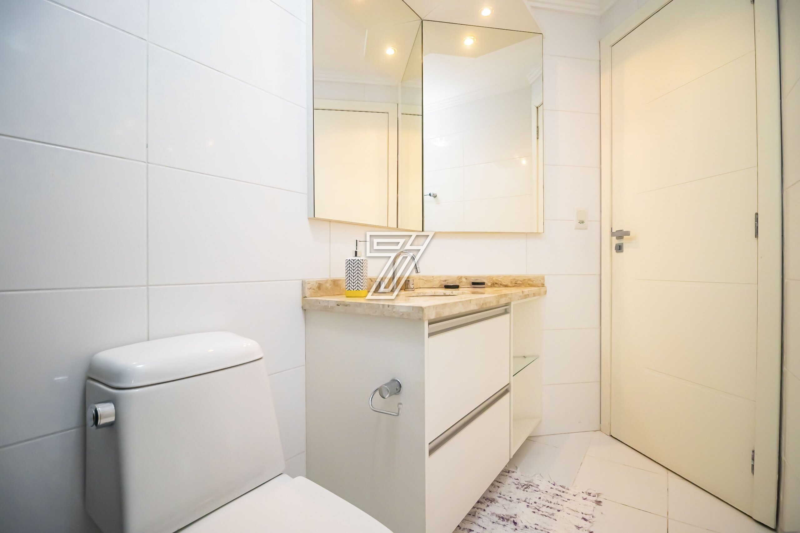 PISO SUPERIOR: hall, banheiro social, ampla suíte com armários (fica cama), bwc com hidromassagem, magnífico closet (dormitório foi transformado em closet/ reversível), porta janela da suíte e demais janelas desse pavimento são de Vidros Duplos propiciando um ótimo conforto de isolamento térmico e acústico, dormitório de solteiro com armários planejados.