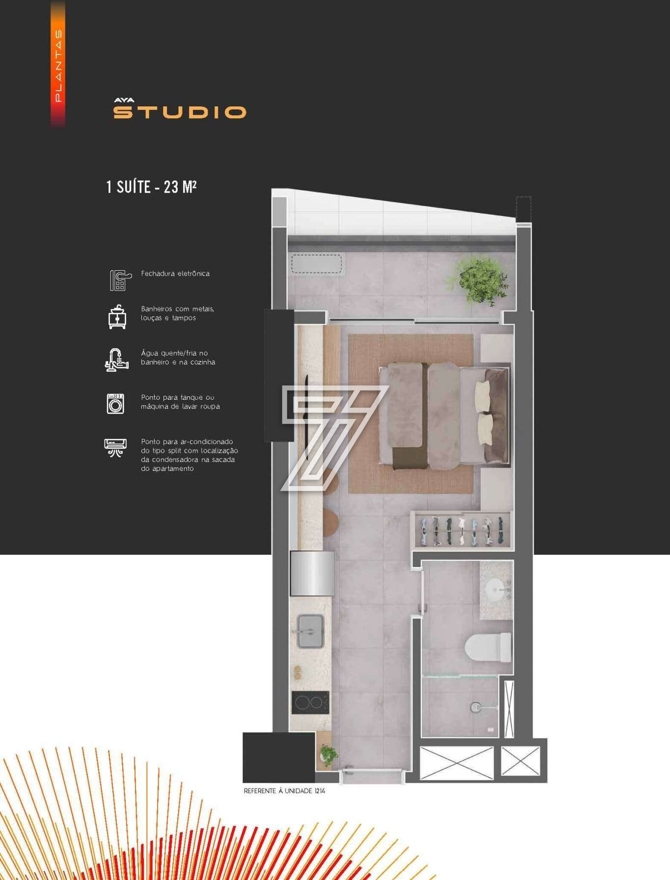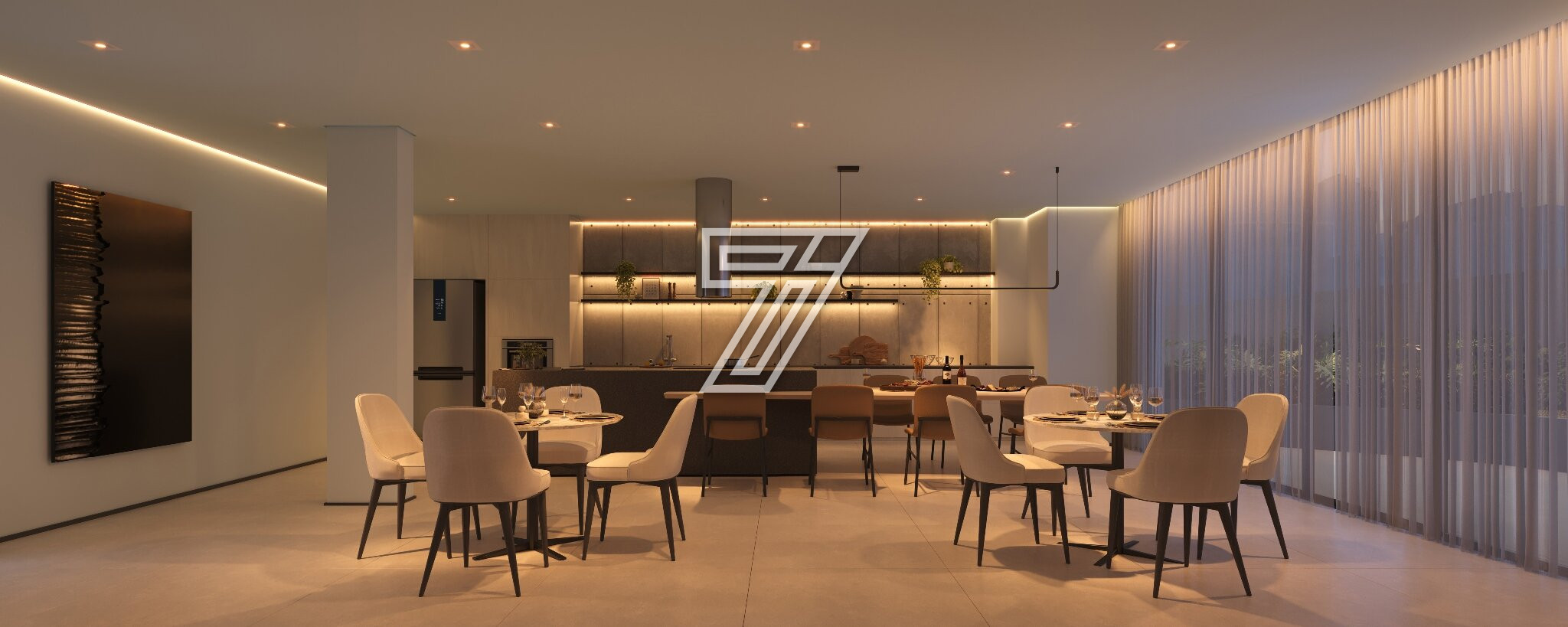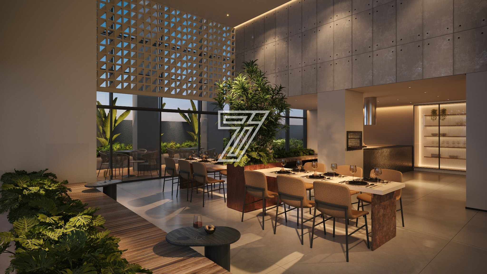 Hall de entrada, Central de entregas e delivery, Coworking, Sala de reuniões, Mini market, Lavanderia comum, PUB, Sala de jogos, Galeria de lojas, Espaço gourmet, Salão de festas, Terraço externo, Academia, Lounge externo, Solarium, Piscina descoberta.
