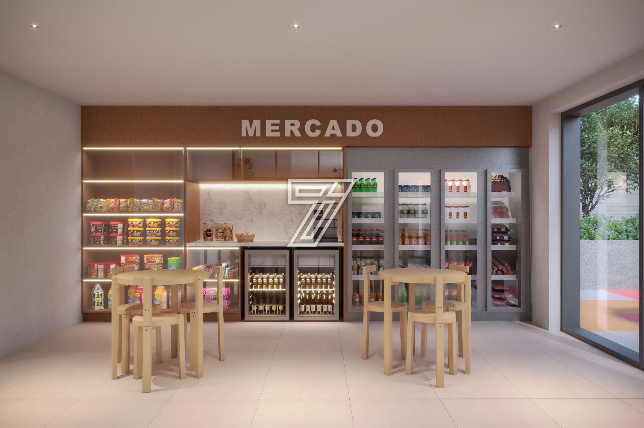 Guarita blindada, Portaria, Hall de entrada com pé-direito elevado, Central de entregas e delivery, Mini mercado, Espaço pet, Playground, Espaço gourmet, Cafeteria, Administração do condomínio, Painéis fotovoltaicos, Bike Lab com bicicletas à disposição para os moradores, Carregador para carro elétrico.