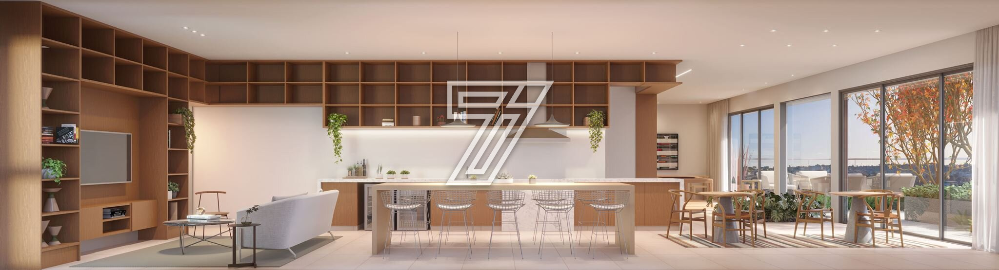 Sala de estar e cozinha americana