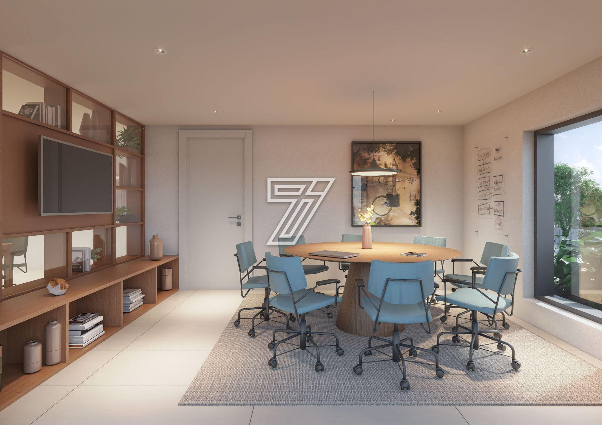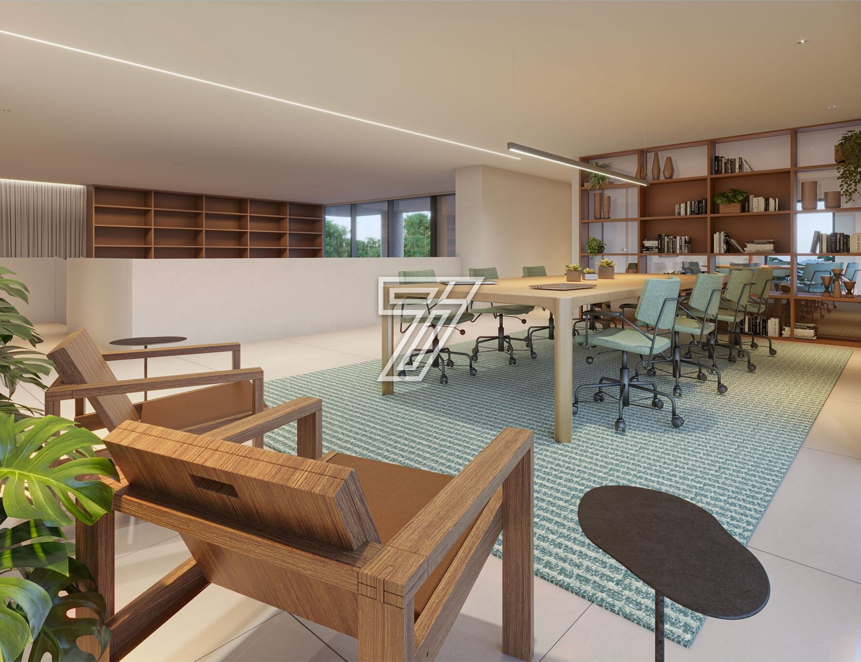 Lavanderia OMO, Coworking, Sala de reuniões, Rouparia, Copa e vestiário para funcionários.
