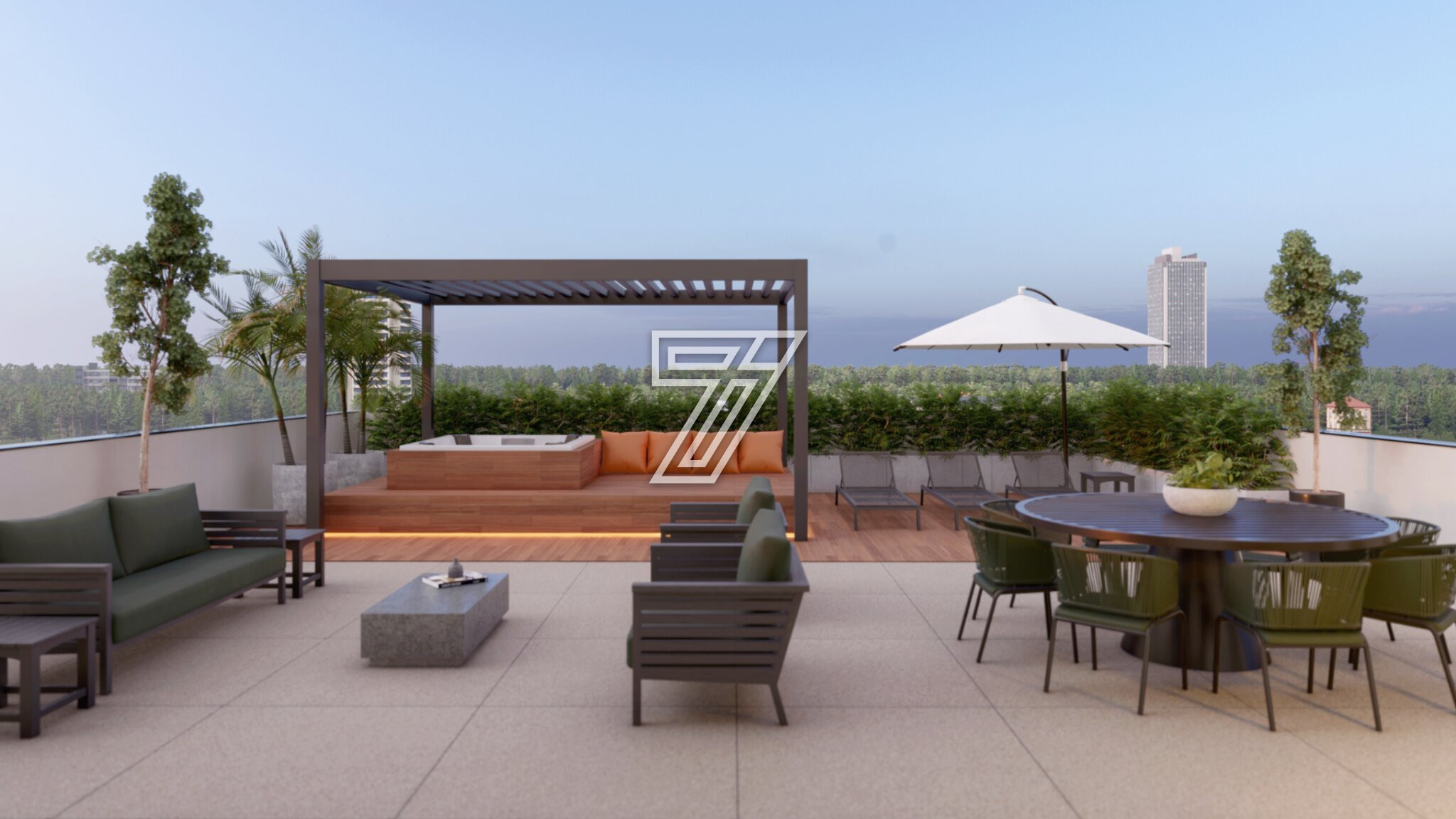 Hall de entrada, Academia, Academia externa, Sky lounge com jacuzzi, Espaço gourmet, Bicicletário, SPA, Lavanderia, Espaço pet, Sistema de portaria remota.